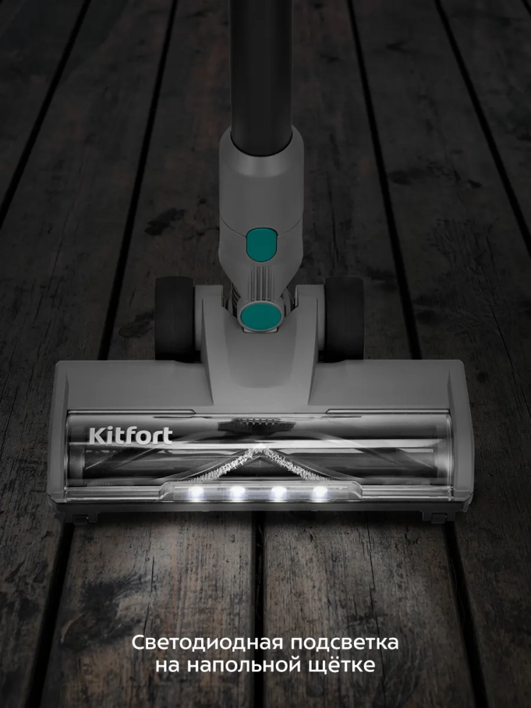 Беспроводной вертикальный пылесос Kitfort КТ-5305 очень удобен при локальной уборке. Он компактен, всегда под рукой и готов к работе. При отсоединении удлинительной трубки и установке насадки он превращается в ручной пылесос. Его конструкция позволяет легко проникать в самые труднодоступные уголки квартиры. При этом не нужно передвигать громоздкий корпус проводного пылесоса и управляться с непослушным шлангом. Пылесос оснащен маневренной напольной турбощеткой, которая вращается в двух плоскостях.