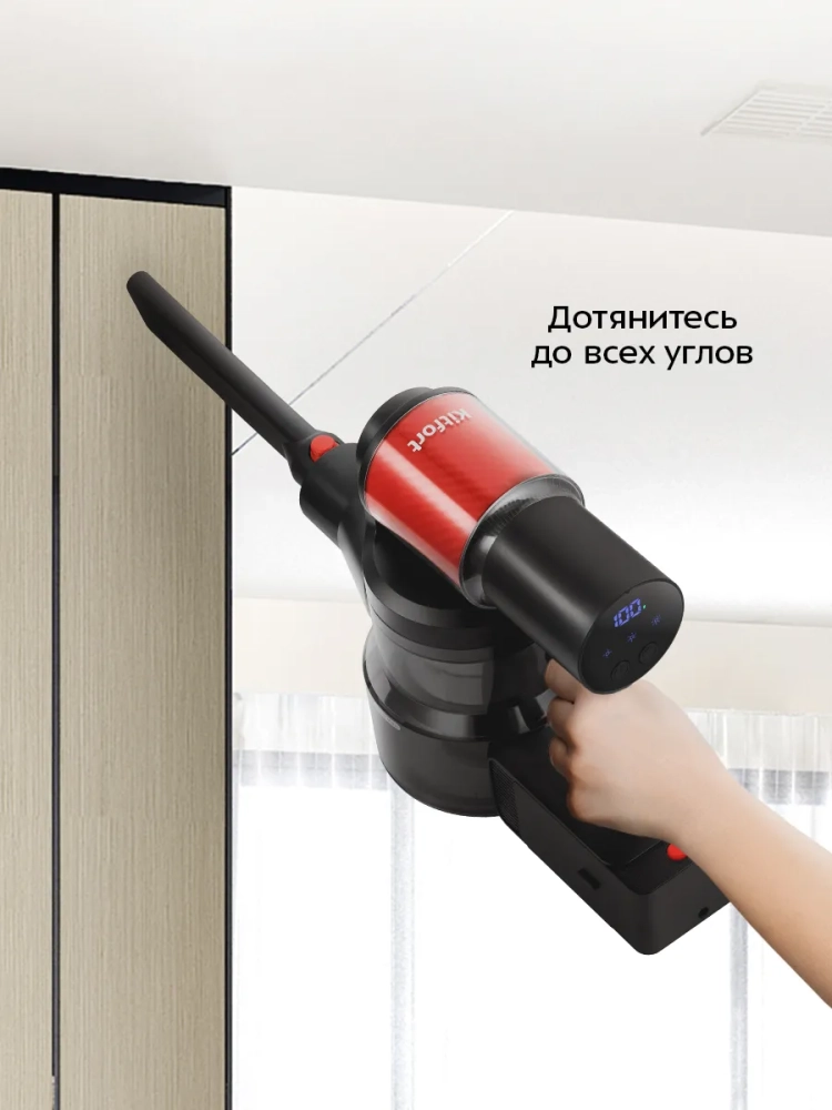 Беспроводной вертикальный пылесос Kitfort КТ-5389 очень удобен при локальной уборке. При отсоединении удлинительной трубки и установке насадки он превращается в ручной пылесос. Его конструкция позволяет легко проникать в самые труднодоступные уголки квартиры. Благодаря работе от аккумулятора не нужно включать вилку в розетку, провода не мешают под ногами. Пылесос оснащен маневренной напольной турбощеткой, которая вращается в двух плоскостях, и гибкой удлинительной трубкой, которая позволяет удобно выполнять уборку в труднодоступных местах.