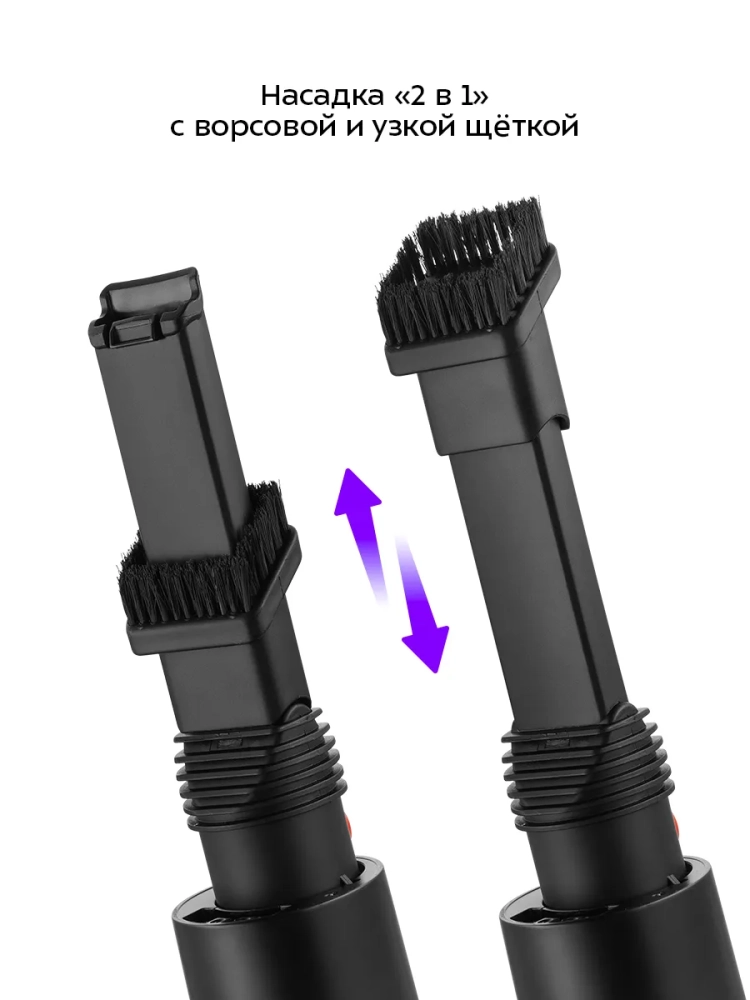 Конструкция «2 в 1» предусматривает наличие ручного пылесоса, который удобно использовать отдельно. Ручным пылесосом можно пропылесосить углы и плинтусы, обивку мебели, пыль со шкафов, шкафчики на кухне или в гостиной, книжные полки, коврики в автомобиле или багажник.