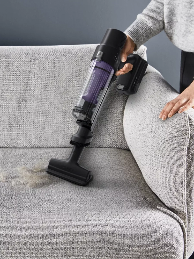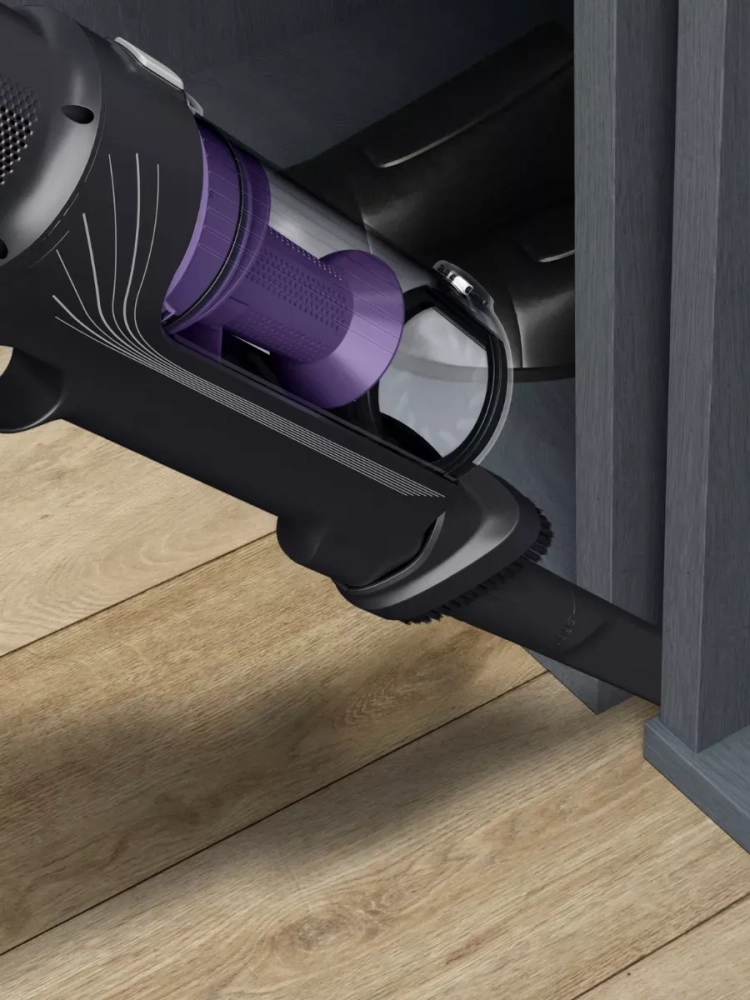 Беспроводной пылесос мощностью 140 Вт обеспечивает безупречную чистоту в доме от пола до потолка благодаря глубокой очистке любых поверхностей. Современные технологии в легком исполнении: пылесос весит всего 1.2 кг в ручном режиме и 2 кг с присоединенной удлинительной трубкой. Емкий аккумулятор обеспечивает до 45 минут* автономной работы для полноценной уборки всего дома за один заряд. *При использовании в ручном режиме при настройке Eco.