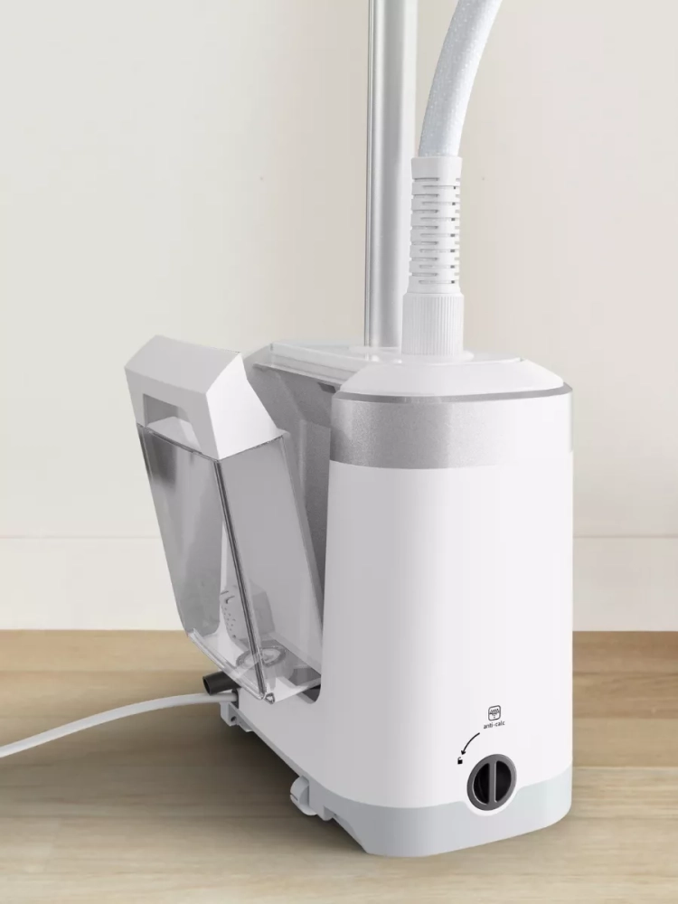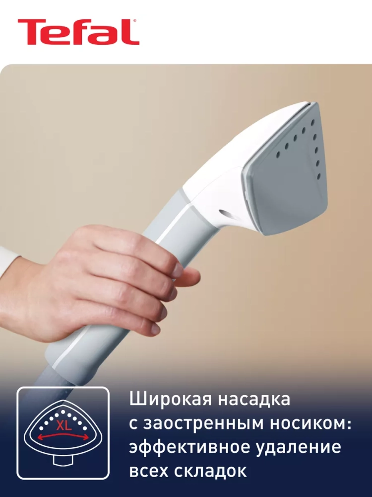 В комплекте с ручным отпаривателем Тефаль есть широкая паровая насадка Delta которой можно обрабатывать большую площадь ткани, ускоряя процесс разглаживания. А ее эргономичная форма поможет устранить складки даже в самых труднодоступных местах. Также у парового отпаривателя интуитивно понятное управление, есть удобный резервуар для воды 1,3 л, который отлично подойдет для длительных сеансов и компактный дизайн со складывающимися колесиками для легкого перемещения и удобного хранения устройства. А система защиты от накипи продлит срок службы и обеспечит длительную производительность прибора.