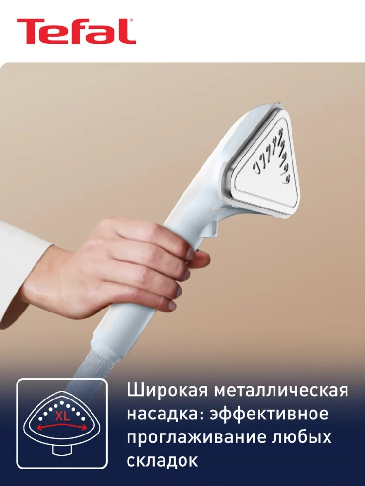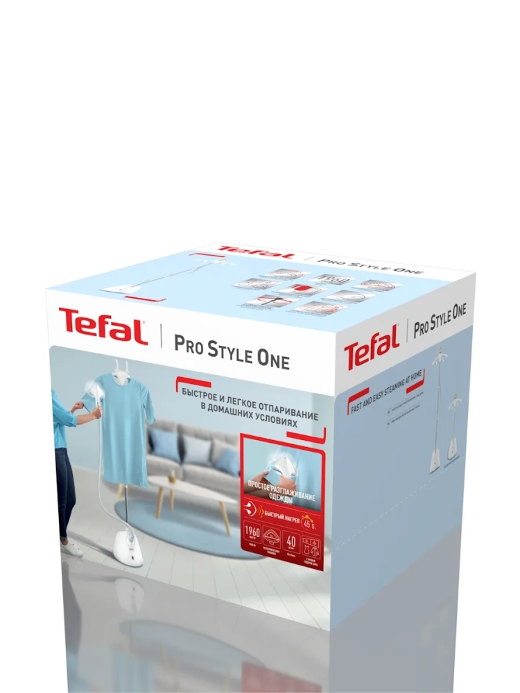 Мощный отпариватель с постоянной подачей пара для безупречного результата день за днем Позвольте себе всегда выглядеть безупречно с помощью отпаривателя Tefal Pro Style One. Благодаря мощной подаче пара прибор великолепно разглаживает одежду из любых тканей, даже самых деликатных. Постоянная подача пара до 40 г/мин в сочетании с широким металлическим утюжком обеспечивают быстрое и высокоэффективное отпаривание, позволяя легко устранить складки и освежить вещи за считанные минуты.