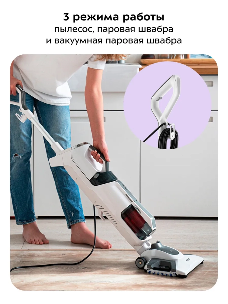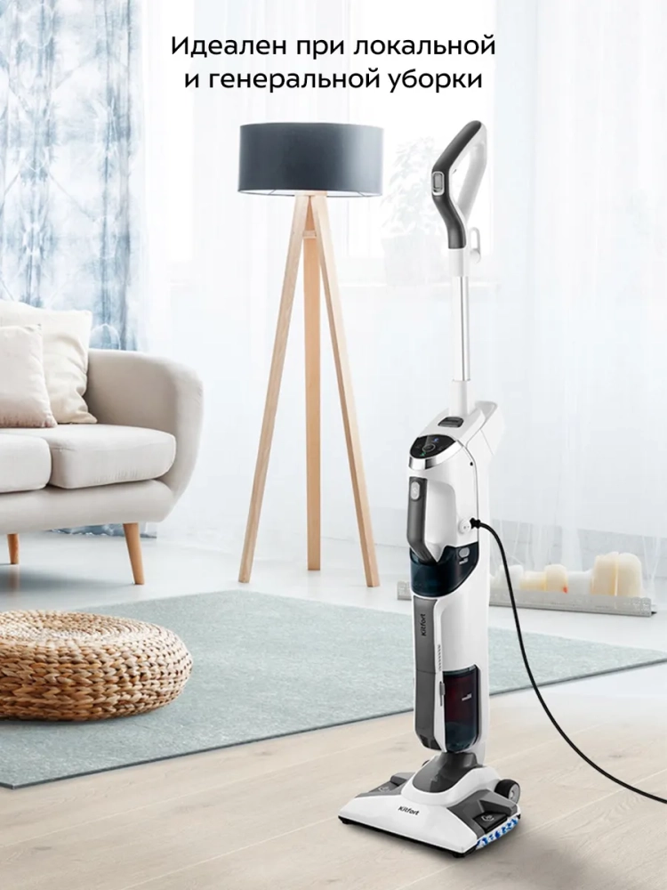 Вертикальный паровой пылесос для дома KT-595 (6 в 1) мощностью 1800 Вт — это идеальное решение для эффективной уборки. Этот многофункциональный прибор сочетает в себе возможности вертикального пылесоса и ручного пароочистителя, что делает его незаменимым помощником в доме. Идеальный подарок на любой случай: на Новый год, 23 февраля, 8 марта, день рождения, свадьбу или юбилей! Проводная конструкция обеспечивает постоянную мощность, а функция горячего пара позволяет но всасывать пыль и мелкий мусор, но и очищать поверхности от въевшихся пятен и жира. Паровой очиститель дезинфицирует полы от бактерий и микробов, уничтожая клещей и других вредителей. Он подходит для уборки различных типов полов: паркета, ламината, линолеума, дерева, ковровых покрытий и керамической плитки. Ручной режим позволяет использовать устройство как моющий очиститель для труднодоступных мест. С помощью этого устройства можно легко справиться с известковыми отложениями на кухне или в санузле. Оно эффективно очищает витражи, оконные рамы, зеркала и фурнитуру. Также подходит для ухода за тканевыми вещами. Мощный вертикальный пылесос оснащен удобным контейнером для сбора мусора без необходимости частой замены мешков. Это экономит время на влажную и сухую уборку больших площадей дома или квартиры. Устройство также пригодится владельцам автомобилей — оно поможет поддерживать чистоту салона автомобиля или мотоцикла благодаря своей универсальности.