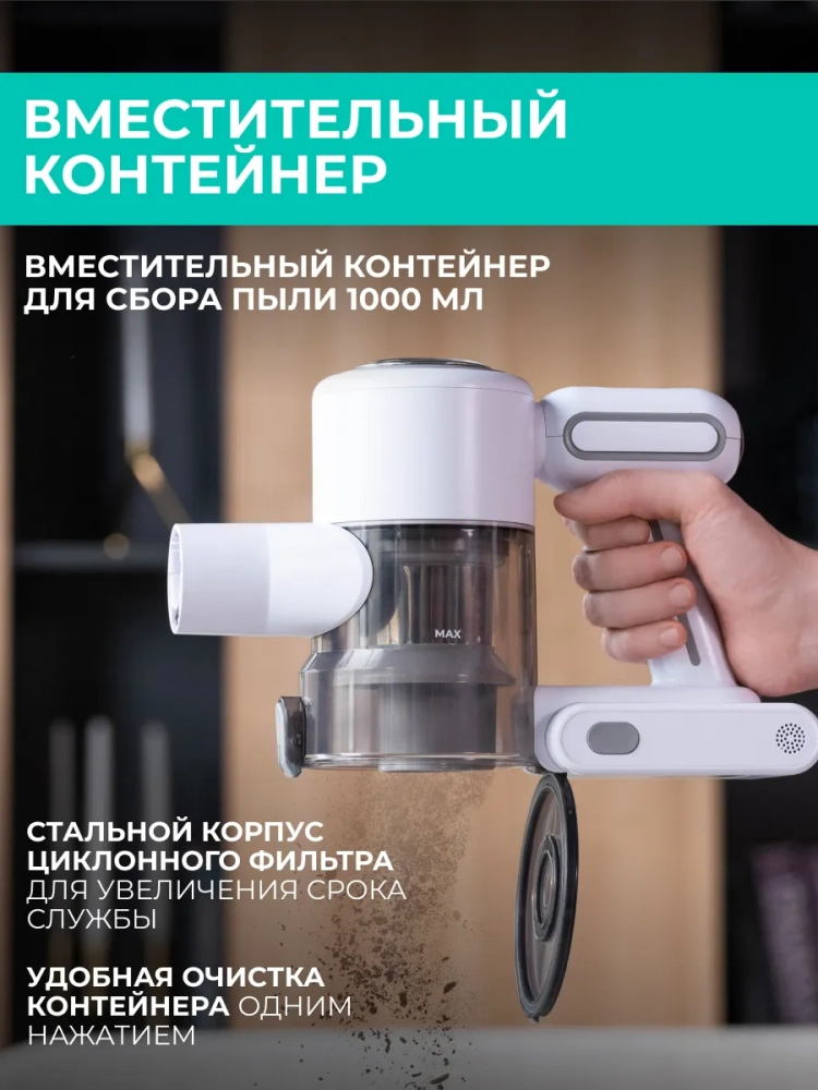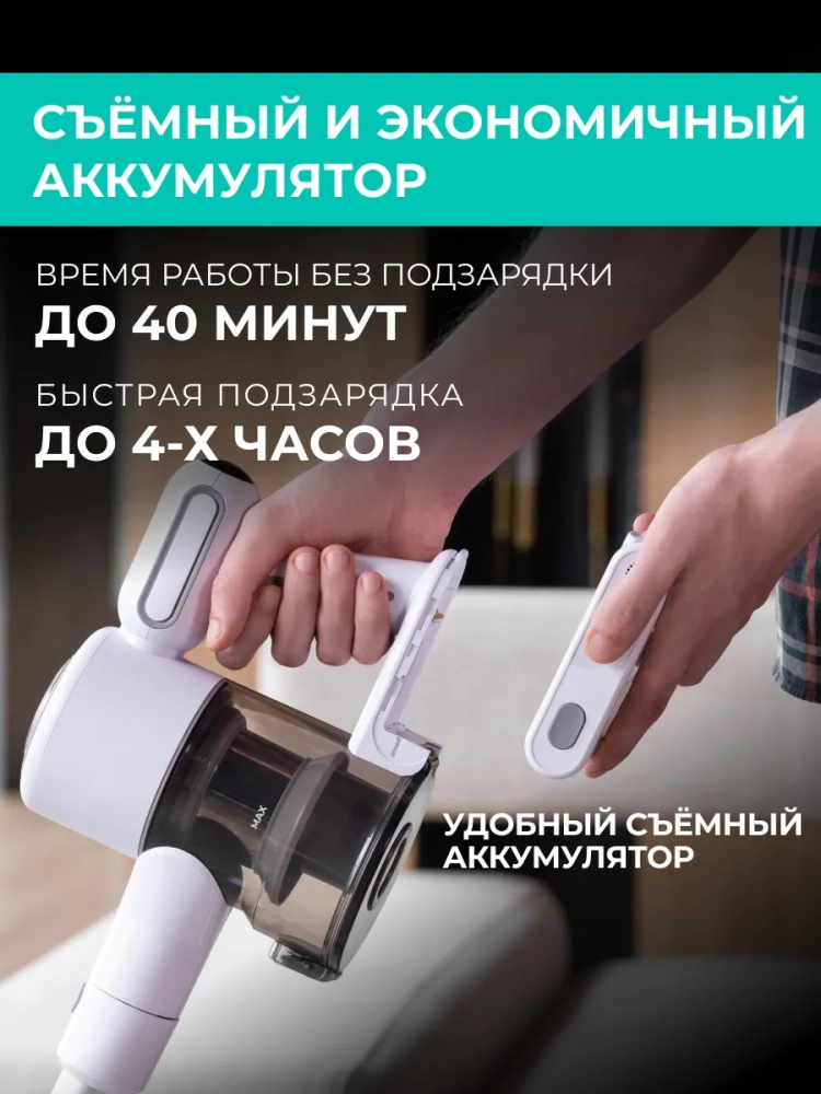 Вертикальный беспроводной пылесос Timberk T-VCH-67 – уникальный пылесос, который сделает уборку вашего дома намного проще и быстрее. Инновационный BLDC мотор обеспечит постоянную высокую мощность всасывания на протяжении всей уборки. Циклоническая система сбора пыли и два сменных валика для твердых и ковровых поверхностей гарантируют высокую эффективность уборки на любых покрытиях. А благодаря литий-ионному аккумулятору с увеличенной емкостью 2200 мАч пылесос работает до 40 минут без подзарядки.
