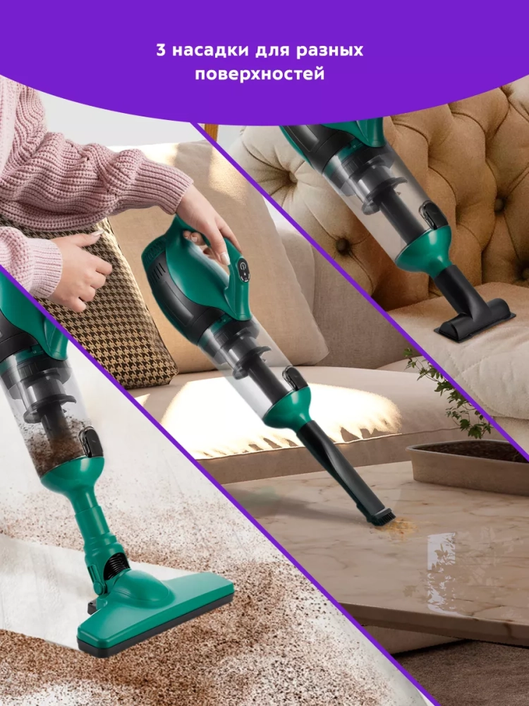 Пылесос можно использовать для уборки полов и ковровых покрытий, чистки мягкой мебели и салона автомобиля.