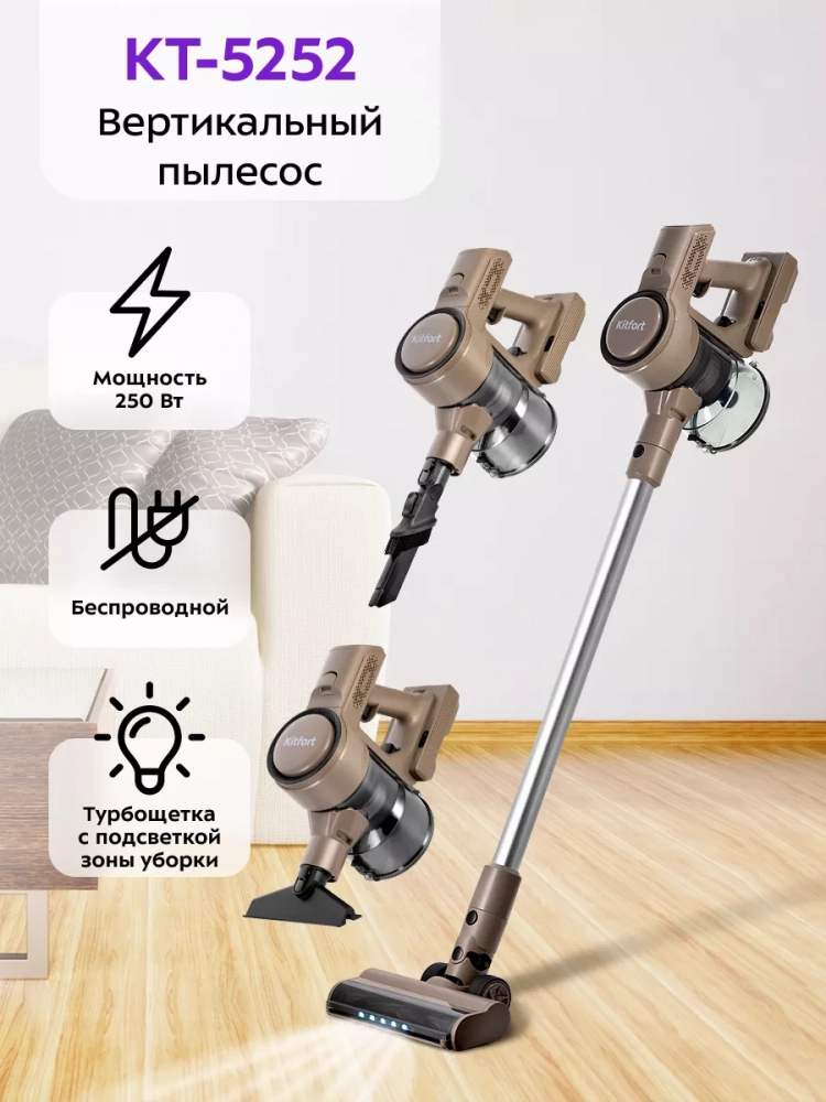 Вертикальный пылесос беспроводной КТ-5252 - 250 Вт