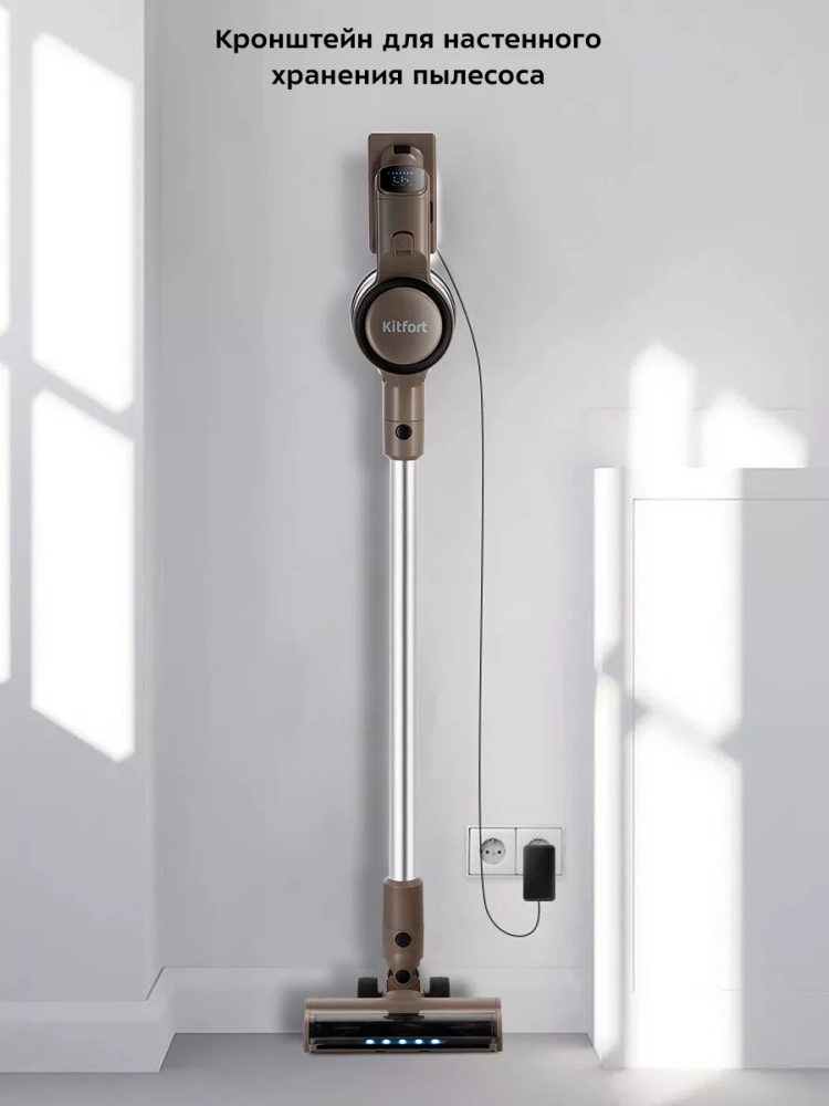 Одно из главных достоинств вертикального пылесоса — его компактность. У пылесоса нет функции вертикальной парковки, поэтому пылесос рекомендуется устанавливать на кронштейн из комплекта, который устанавливают на стену.