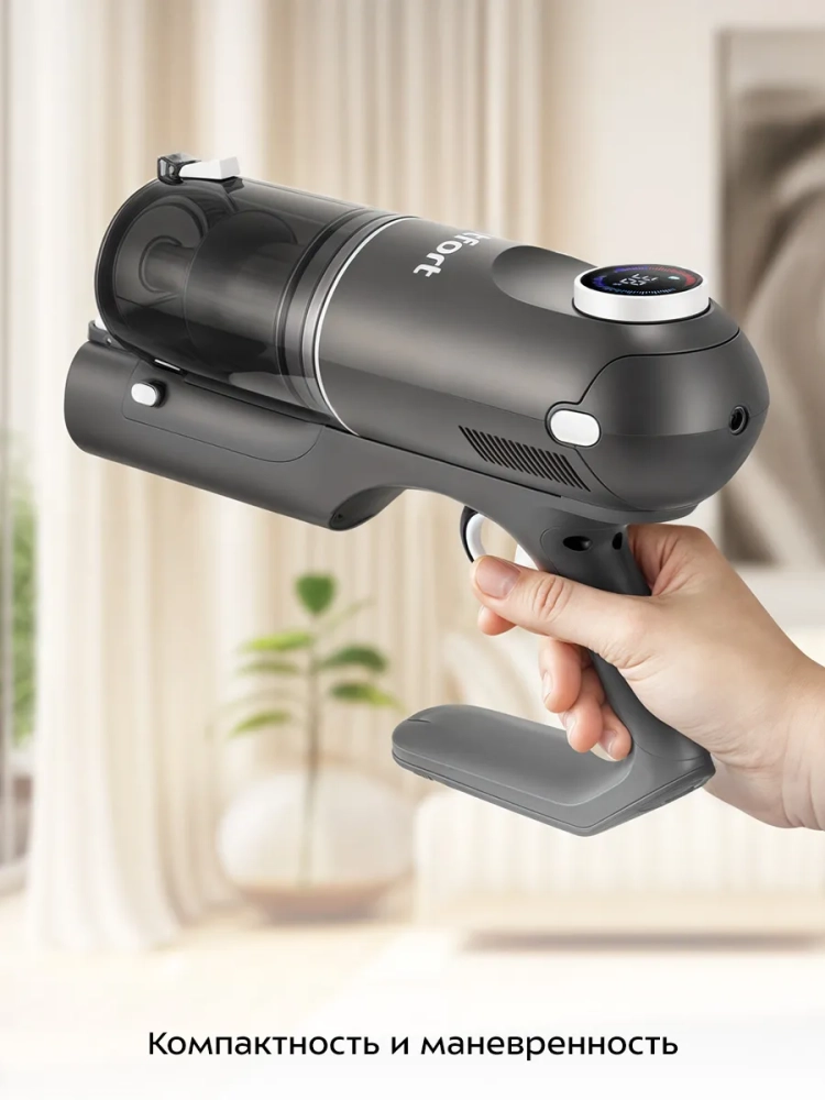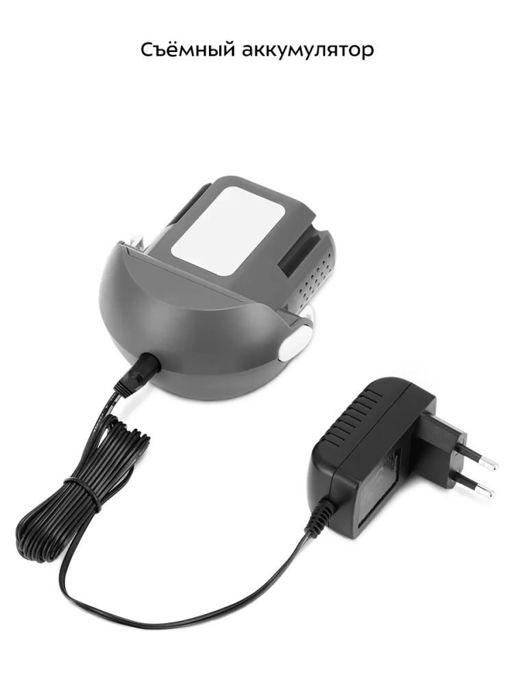 Благодаря работе от аккумулятора пылесос имеет неограниченный радиус действия: от любого уголка квартиры до машины или беседки в саду.