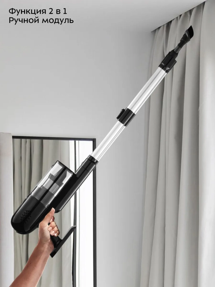 Конструкция «2 в 1» предусматривает наличие ручного пылесоса, который удобно использовать отдельно. Ручным пылесосом можно пропылесосить углы и плинтусы, обивку мебели, пыль со шкафов, шкафчики на кухне или в гостиной, книжные полки, коврики в автомобиле или багажник.