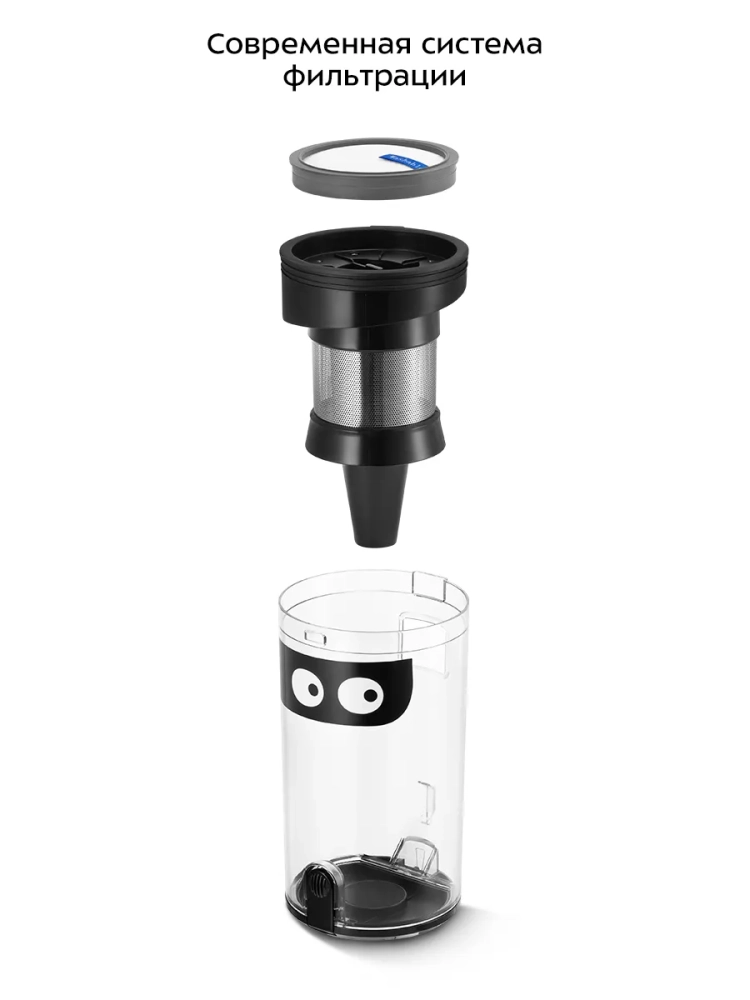 Конструкция «2 в 1» предусматривает наличие ручного пылесоса, который удобно использовать отдельно. Ручным пылесосом можно пропылесосить углы и плинтусы, обивку мебели, пыль со шкафов, шкафчики на кухне или в гостиной, книжные полки, коврики в автомобиле или багажник.