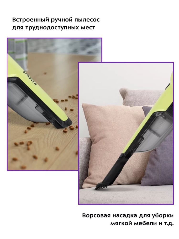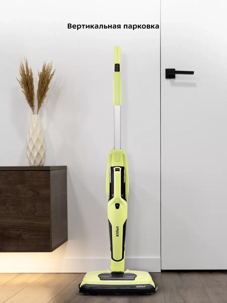 Беспроводной вертикальный пылесос Kitfort КТ-5201 (3 в 1) позволяет проводить сухую и влажную уборку, он удобен при локальной и генеральной уборке.