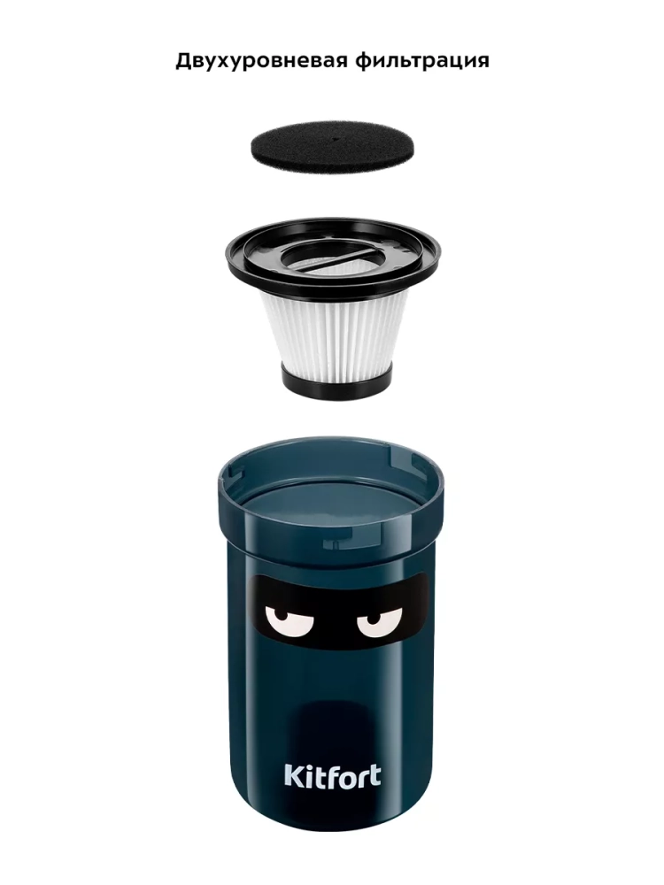 Пылесос оборудован двухуровневой фильтрацией, обеспечивающей хорошую очистку. Пылесборник легко снимается, а пыль из него вытряхивается очень просто. В пылесосе установлены фильтр тонкой очистки и поролоновый фильтр, которые задерживают частички пыли. Фильтры можно снять и промыть водой. Также у пылесоса есть выходные несъемные фильтры, которые предотвращают попадание пыли обратно в воздух.