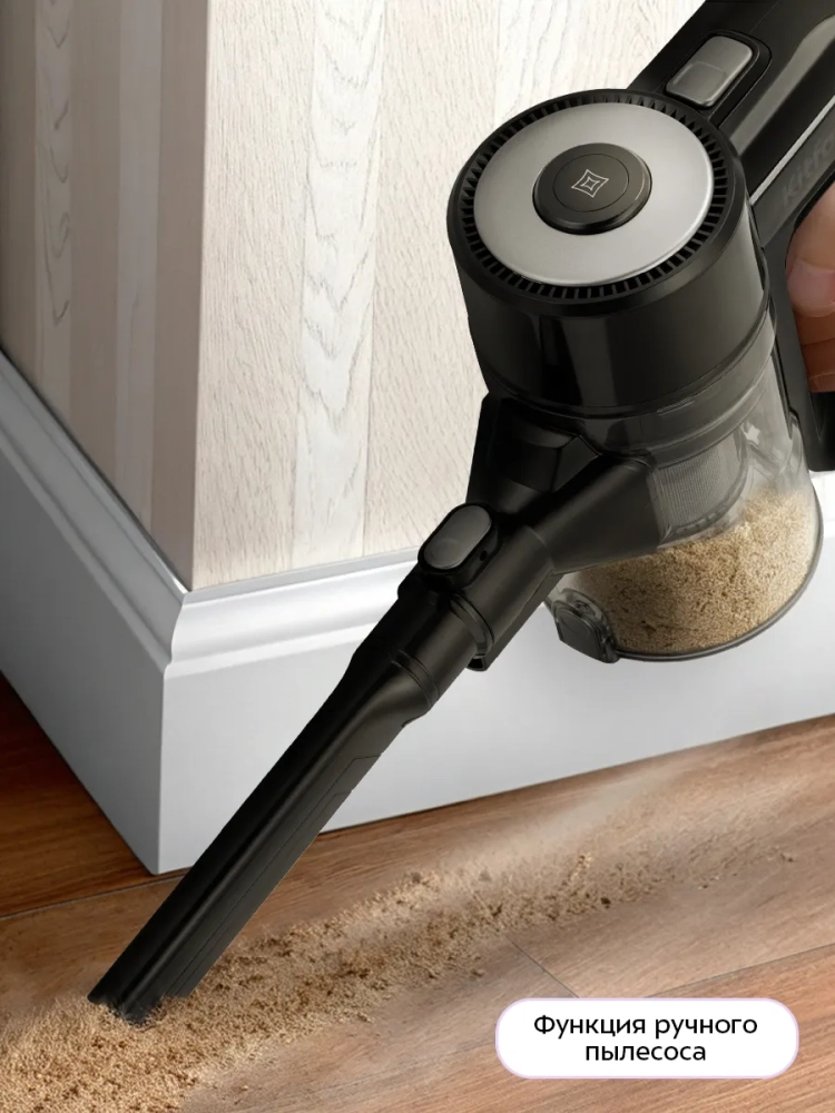 Беспроводной вертикальный пылесос Kitfort КТ-5302 очень удобен при локальной уборке. Он компактен, всегда под рукой и готов к работе. При отсоединении удлинительной трубки и установке насадки он превращается в ручной пылесос. Его конструкция позволяет легко проникать в самые труднодоступные уголки квартиры. При этом не нужно передвигать громоздкий корпус проводного пылесоса и управляться с непослушным шлангом. Благодаря работе от аккумулятора не нужно включать вилку в розетку, провода не мешают под ногами. Поэтому пылесос имеет неограниченный радиус действия: от любого уголка квартиры до машины или беседки в саду. Пылесос оснащен маневренной турбощеткой, которая вращается в двух плоскостях.