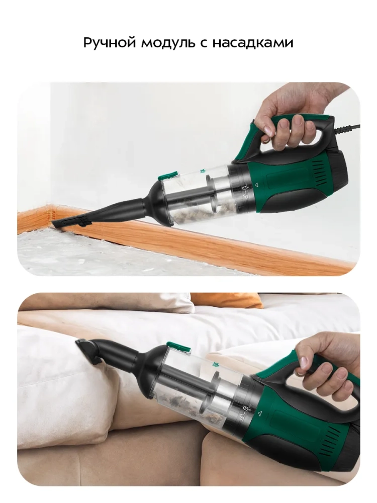 Пылесос можно использовать для уборки полов и ковровых покрытий, чистки мягкой мебели и других поверхностей, шкафов.