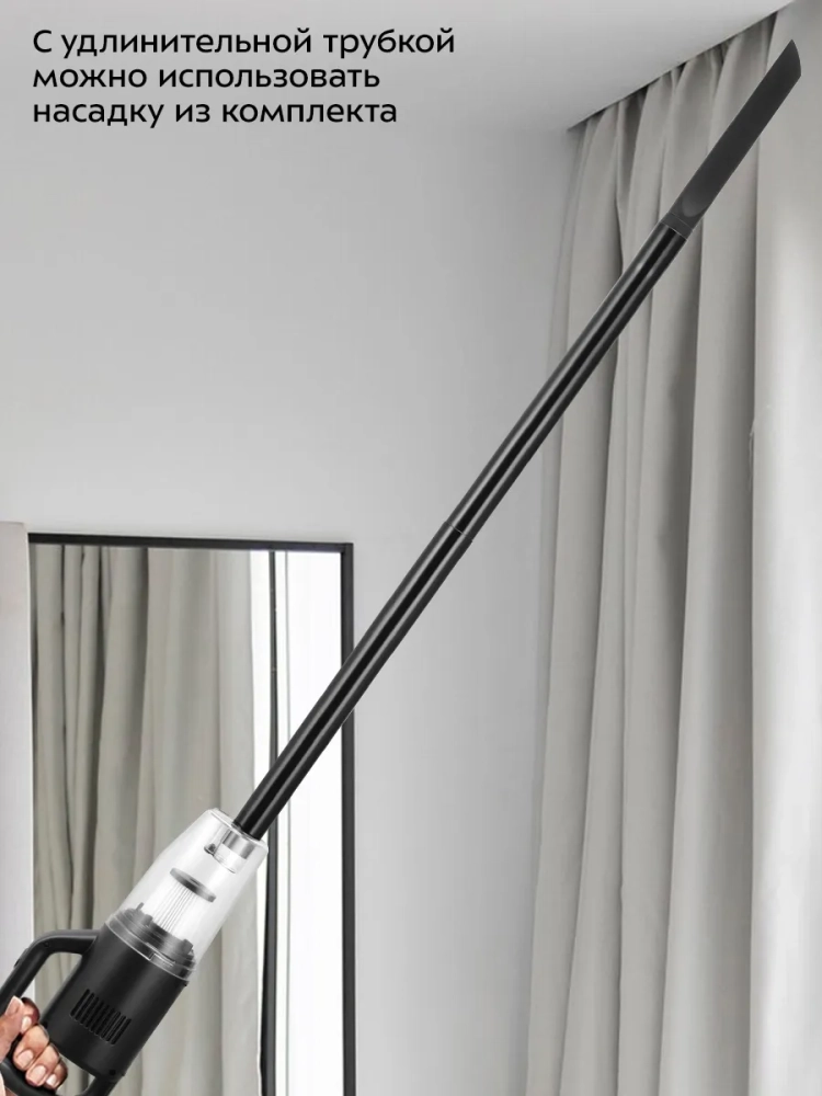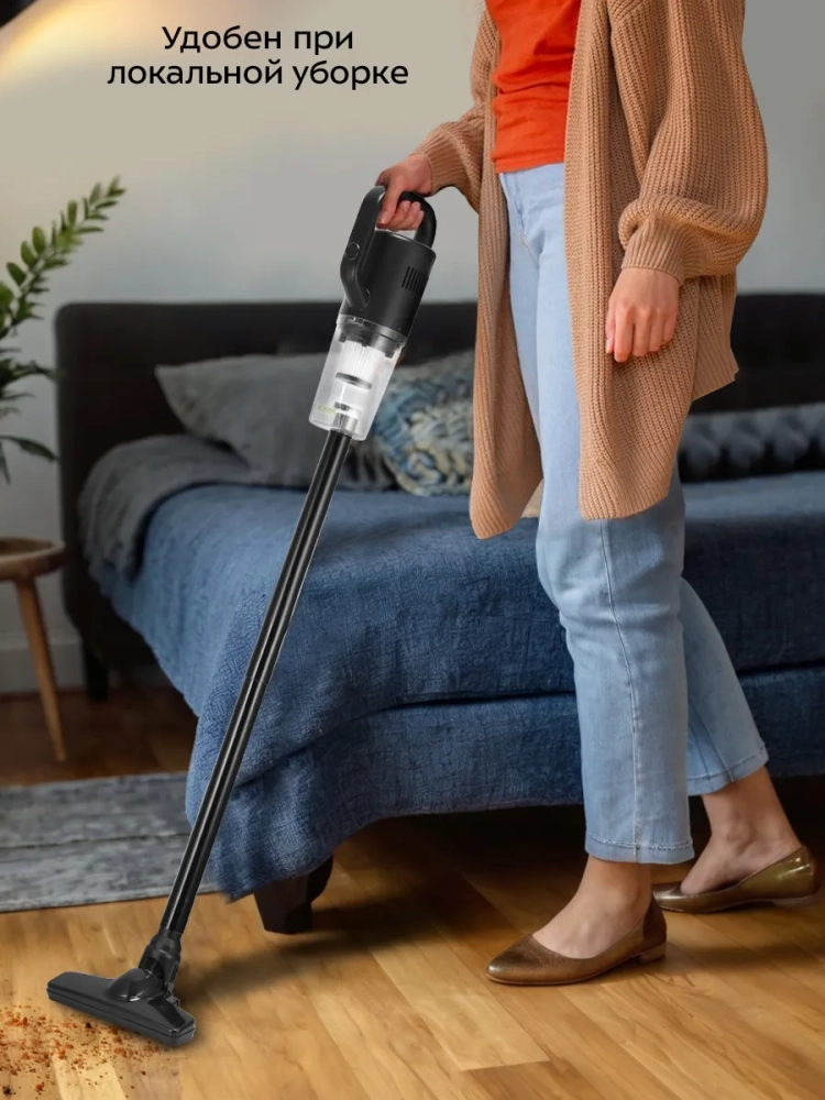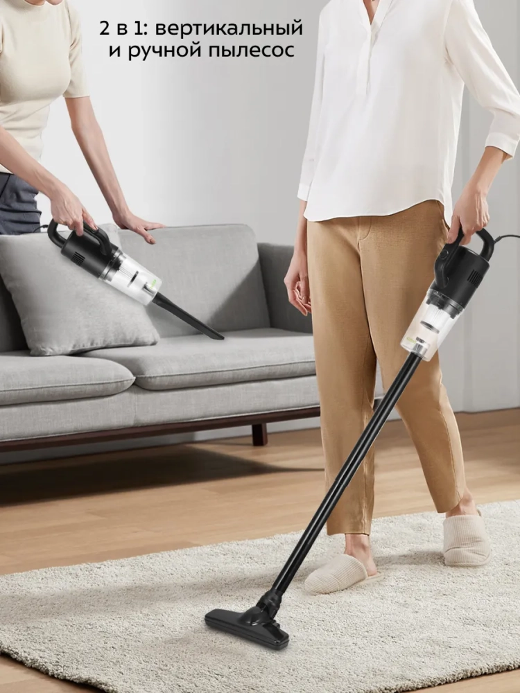 Конструкция «2 в 1» предусматривает наличие ручного пылесоса, который удобно использовать отдельно. Ручным пылесосом можно пропылесосить углы и плинтусы, обивку мебели, пыль со шкафов, шкафчики на кухне или в гостиной, книжные полки, коврики в автомобиле или багажник.
