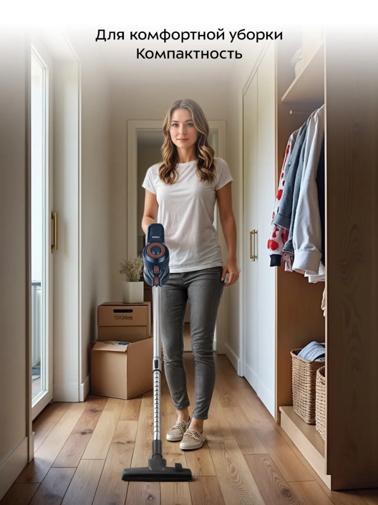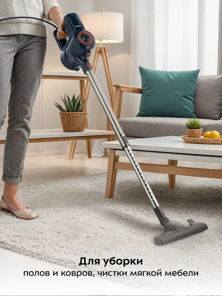 Вертикальный пылесос Kitfort КТ-5531 очень удобен при локальной и генеральной уборке. Он компактен, всегда под рукой и готов к работе. При отсоединении удлинительной трубки и установке насадки он превращается в ручной пылесос. Его конструкция позволяет легко проникать в самые труднодоступные уголки квартиры. При этом не нужно передвигать громоздкий корпус прибора и управляться с непослушным шлангом. Пылесос оснащен маневренной напольной щеткой.