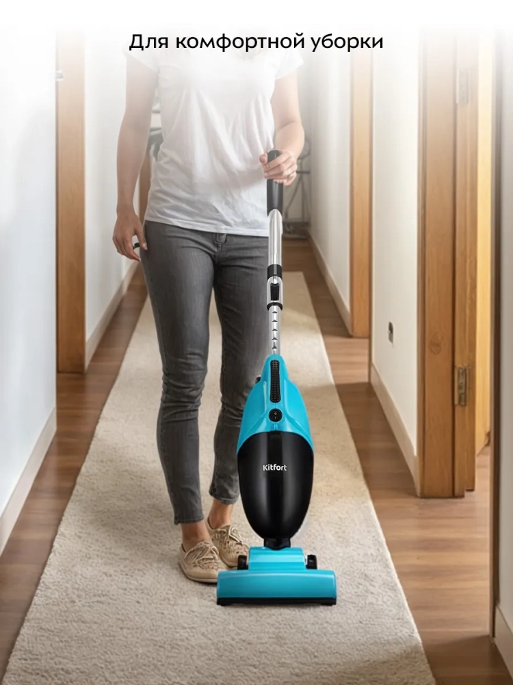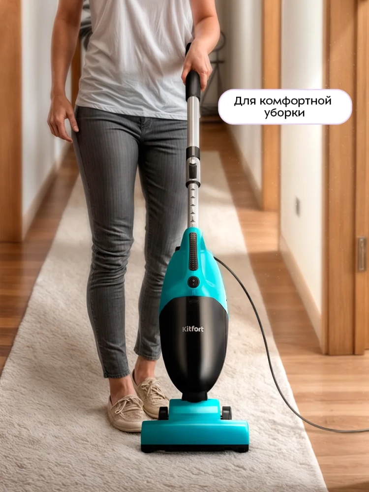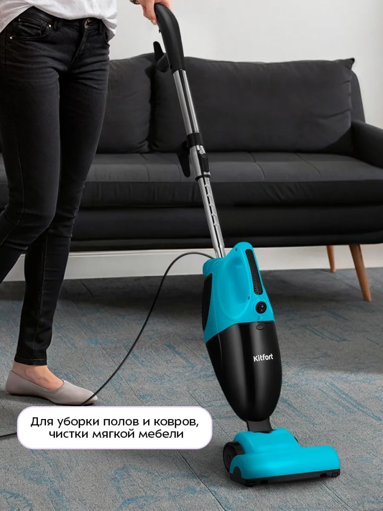Вертикальный пылесос Kitfort КТ-5544 очень удобен при локальной уборке. Он компактен, всегда под рукой и готов к работе. При отсоединении телескопической трубки и установке насадки он превращается в ручной пылесос. Его конструкция позволяет легко проникать в самые труднодоступные уголки квартиры. При этом не нужно передвигать громоздкий корпус прибора.