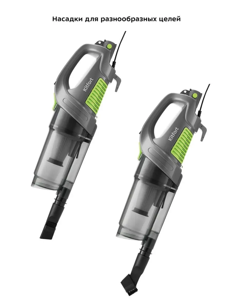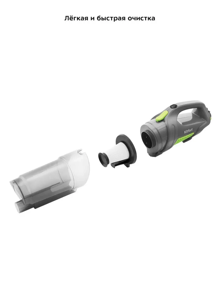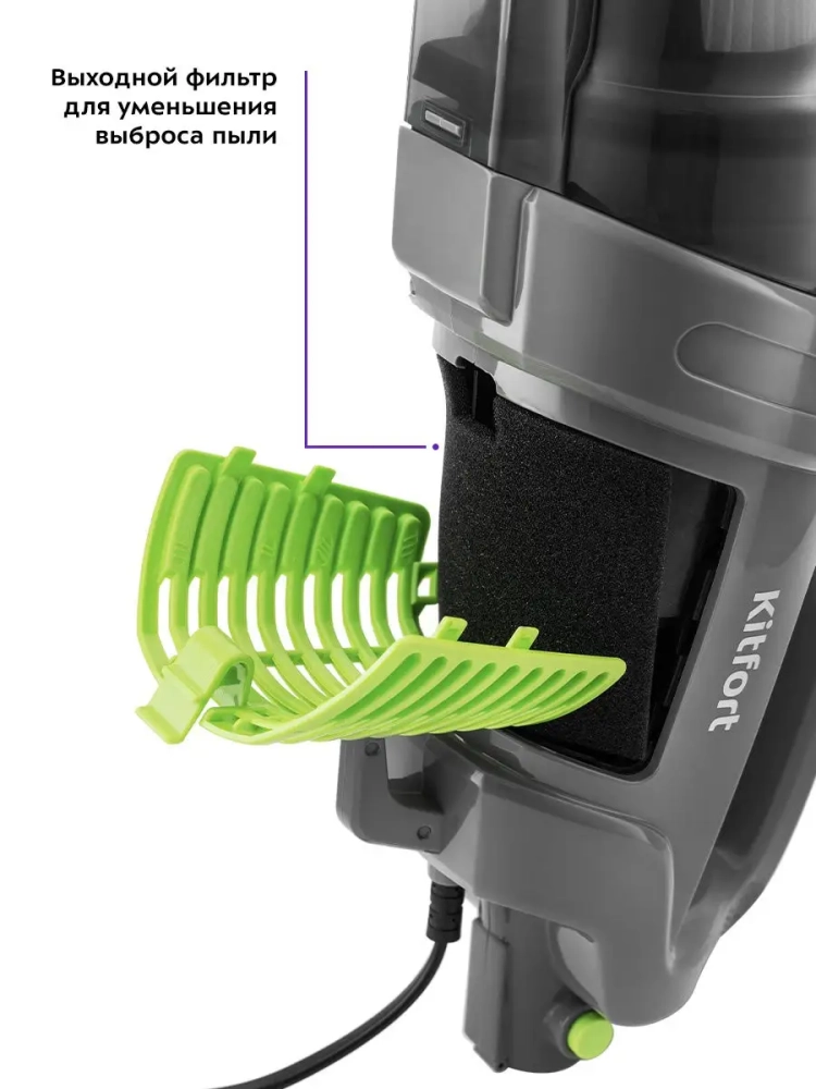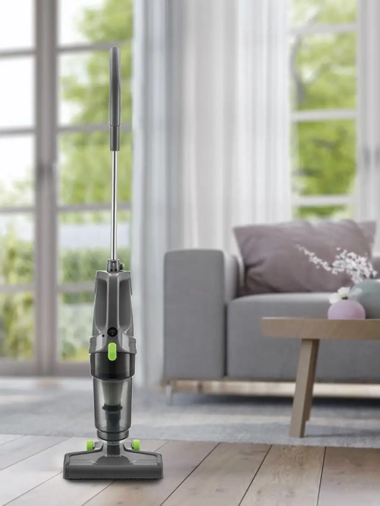 Вертикальный пылесос Kitfort КТ-587 удобен при локальной и генеральной уборке. В комплекте к пылесосу идет насадка 2-в-1, которая поможет вам вычистить щели, углы, а также ковровые покрытия. Пылесос оборудован современным циклонным фильтром, обеспечивающим хорошую очистку, при этом сила всасывания не зависит от наполненности пылесборника. Пылесос имеет функцию вертикальной парковки и занимает мало места при хранении.На ручке пылесоса имеются специальные держатели для удобного хранения шнура. Под верхним держателем есть крючок для более удобного размещения шнура во время уборки.Конструкция 2-в-1 предусматривает наличие ручного пылесоса, который удобно использовать отдельно. Ручным пылесосом можно пропылесосить углы и плинтусы, обивку мебели, пыль со шкафов (куда обычным пылесосом очень трудно дотянуться из-за ограниченной длины шланга), шкафчики на кухне или в гостиной или книжные полки.