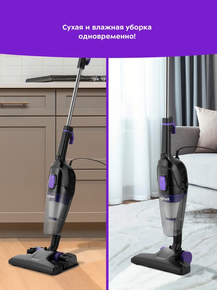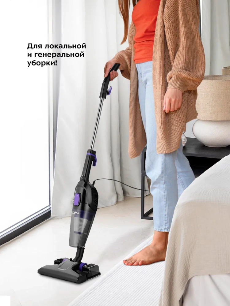 Вертикальный пылесос Kitfort КТ-5190 удобен при локальной и генеральной уборке. Он компактен, всегда под рукой и готов к работе, а при желании он легко трансформируется в ручной пылесос. Вертикальный пылесос хорошо подходит для оперативной уборки, например, рассыпанных крошек или песка от обуви в коридоре. Утомительная уборка превращается в легкое и увлекательное занятие, а время уборки сокращается вдвое.
