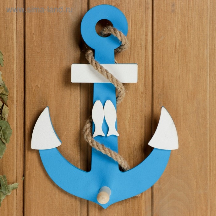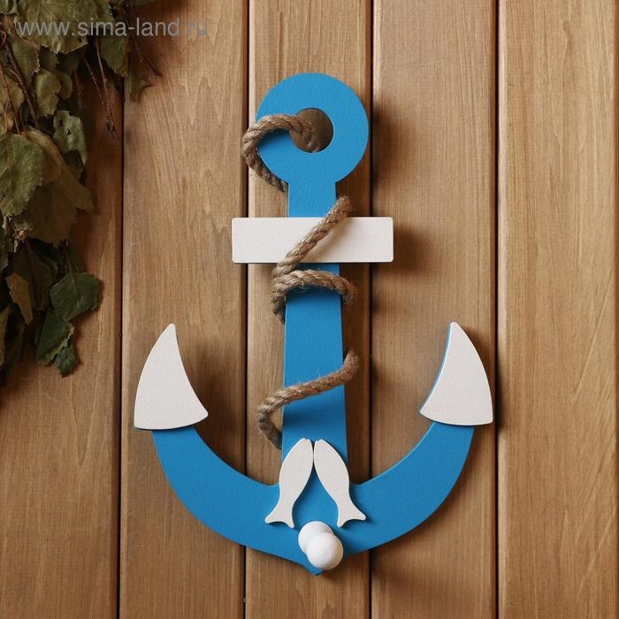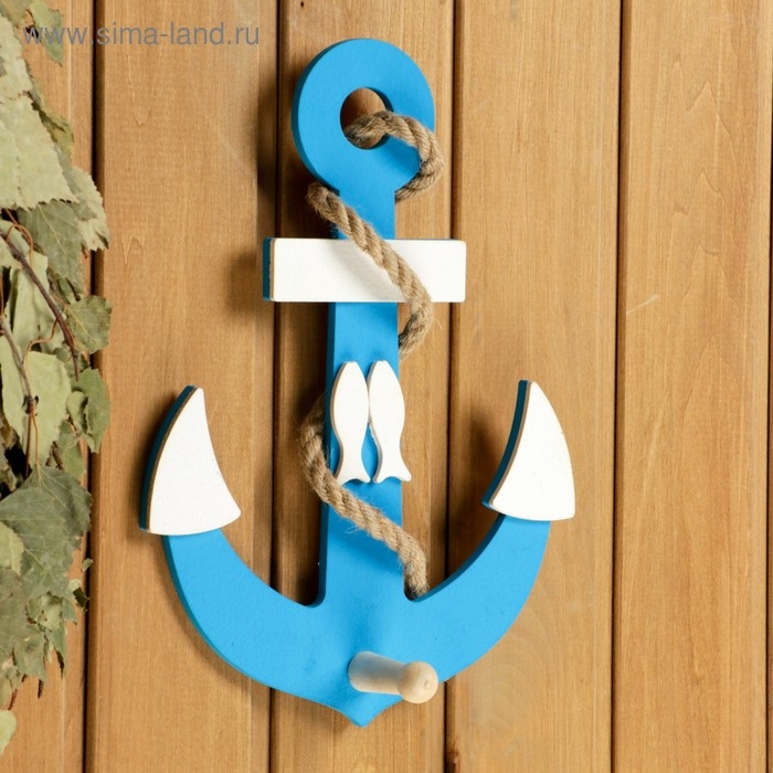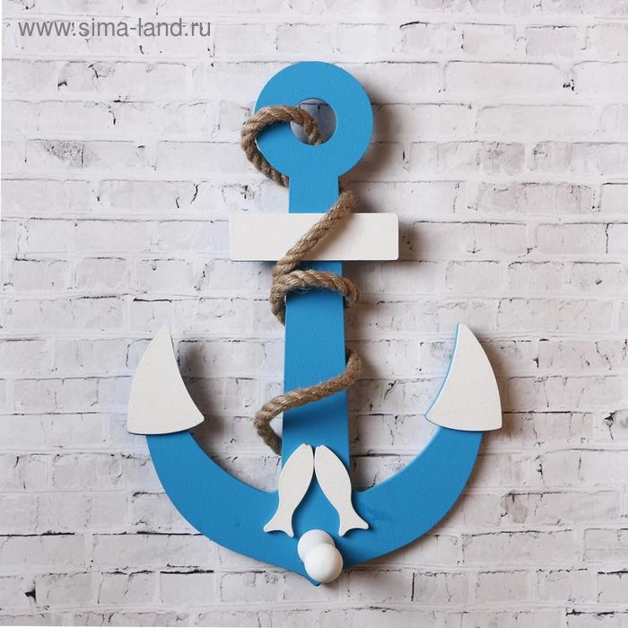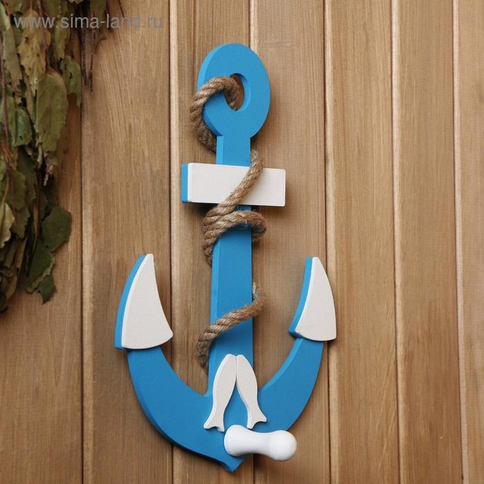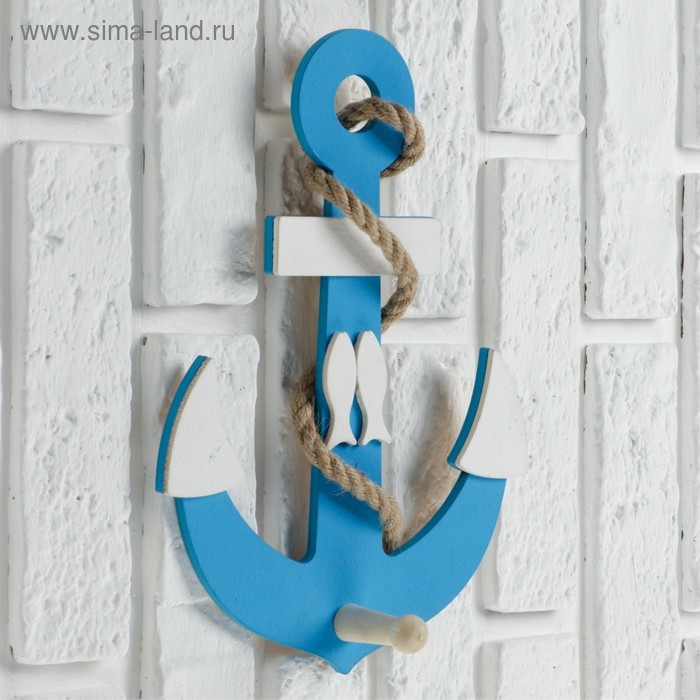 Вешалка "Якорь с рыбкой" голубой 28х20х6см