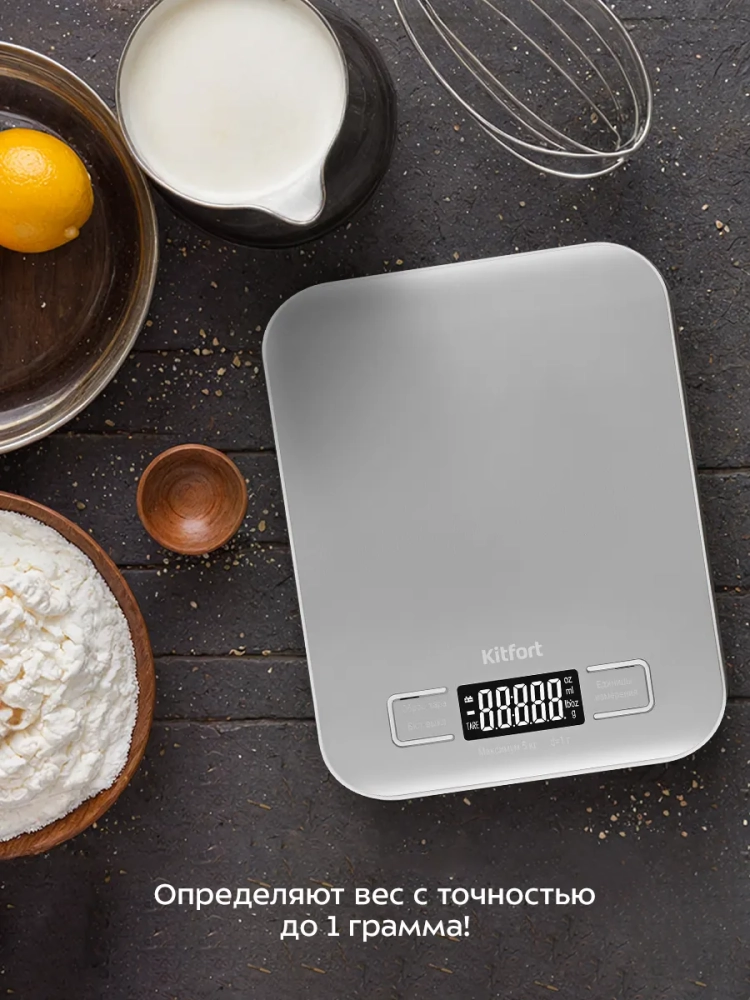 Электронные кухонные весы Kitfort КТ-860 станут незаменимым помощником на кухне, обеспечивая высокую точность измерений. Они позволяют определять вес до 5 кг с точностью до 1 грамма. Весы оснащены дисплеем с крупными цифрами, функциями тарирования и выбора единиц измерения.