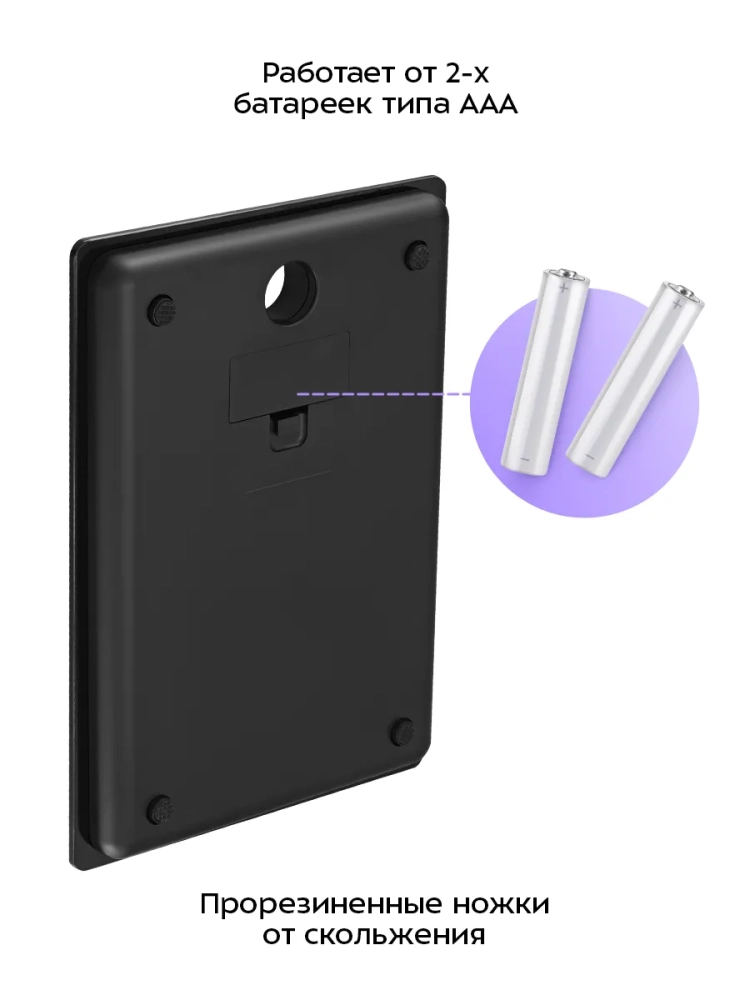Весы работают от двух батареек типоразмера ААА (входят в комплект).