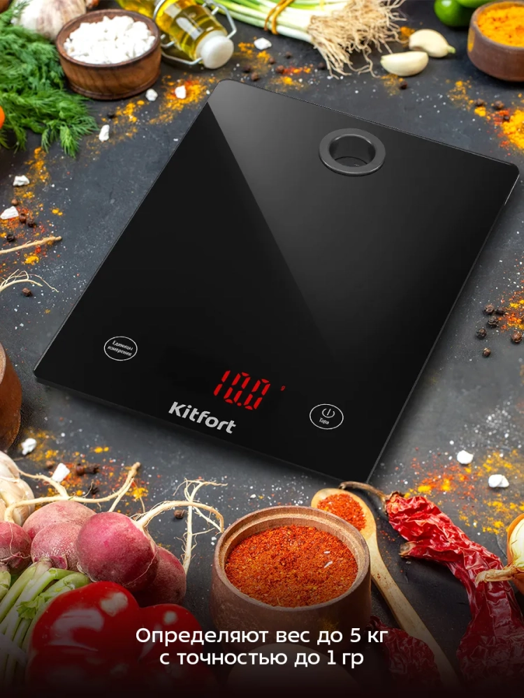 Кухонные весы КТ-862 имеют простое управление. Благодаря компактному размеру и стильному дизайну они впишутся в любой интерьер.