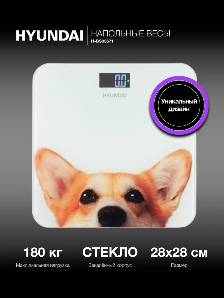 Весы напольные электронные Hyundai H-BS03671 белый, нагрузка до 180кг, материал платформы закаленное стекло, питание от 2хAAA. Элементы питания в комплекте
