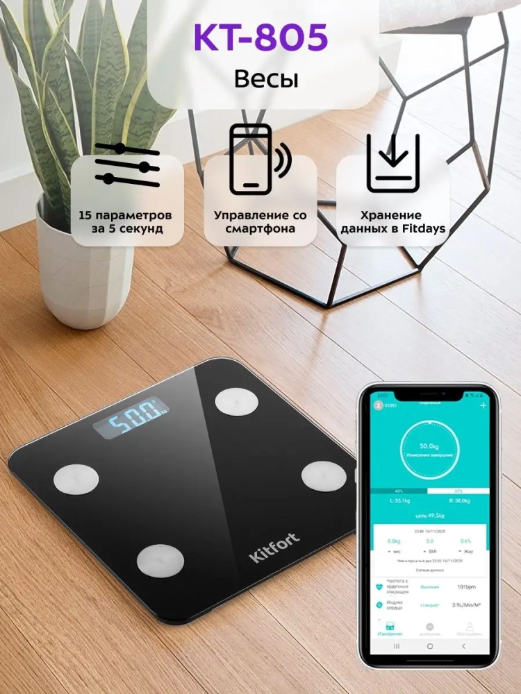 Электронные напольные весы обеспечивают высокую точность измерения и станут неизменным спутником для людей, следящих за своим весом. Весы Kitfort КТ-805 представляют современное поколение “умных” весов.