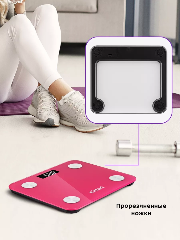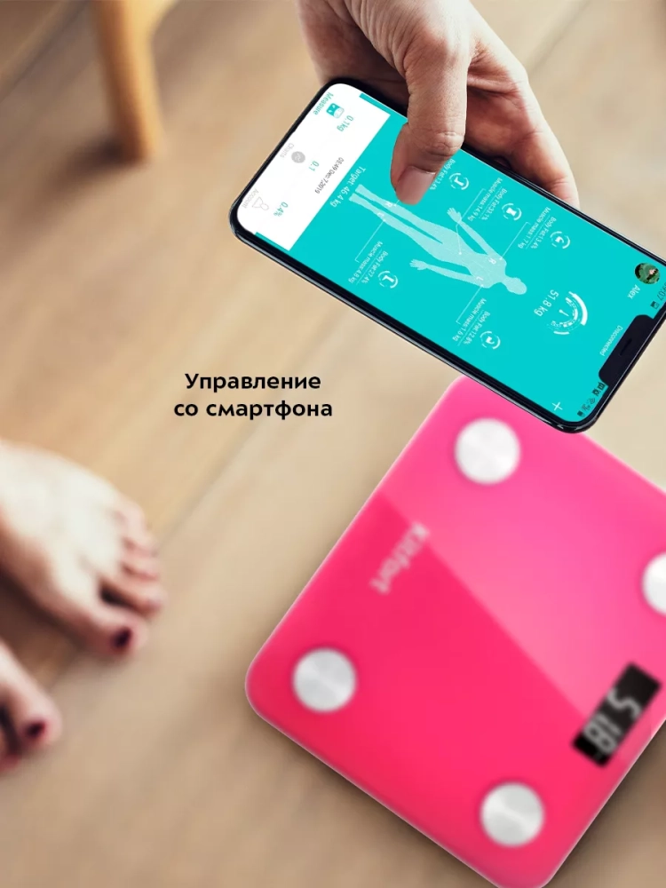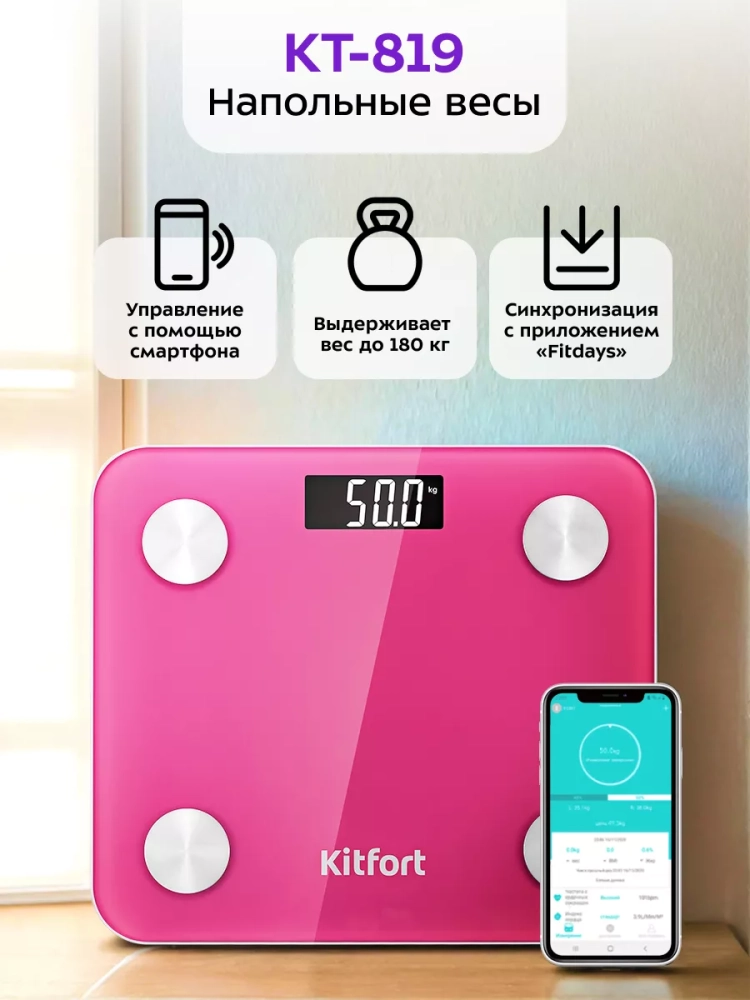Электронные напольные весы обеспечивают высокую точность измерения, что очень важно людям, следящим за своим весом. Весы Kitfort КТ-819 представляют современное поколение «умных» весов, поскольку их можно подключить к приложению FitGo, включив передачу данных через Bluetooth. Приложение выводит на экран телефона разные параметры биоимпедансного анализа: вес, индекс массы тела, мышечную массу, костную массу, процентное содержание воды и жира в организме и т.д.