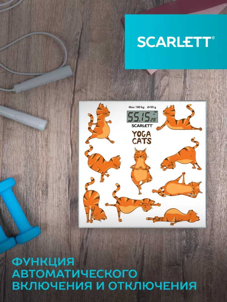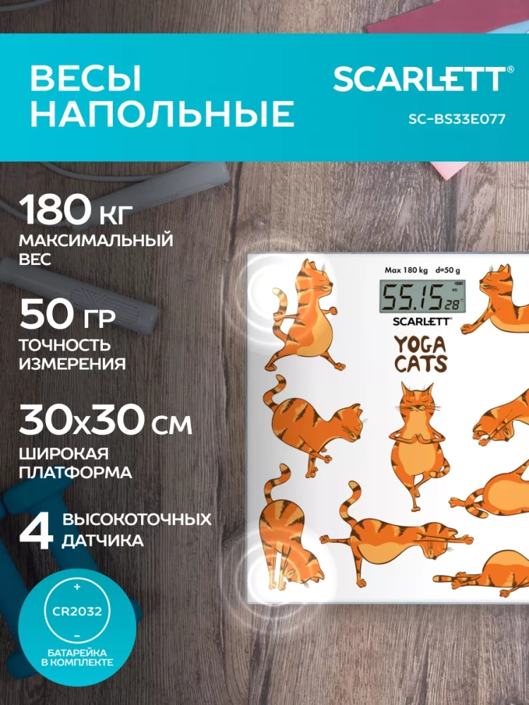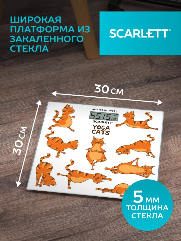 Весы напольные электронные SC-BS33E077, йога коты