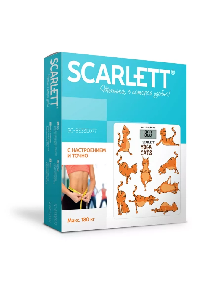 Напольные весы Scarlett - это простой и удобный способ контролировать свой вес! Благодаря высокочувствительным датчикам погрешность составит не более одной цены деления: 100 г. Максимальный вес: 180 кг. Ультратонкий дизайн обеспечит компактное хранение. Материал платформы - высокопрочное закаленное стекло. Автоматическое включение и выключение позаботятся об экономом расходе заряда батареи. Индикатор перегрузки и индикатор батарейки обеспечат комфортную эксплуатацию. Большой жидкокристаллический дисплей 74 x 30 мм делает эксплуатацию весов комфортнее. Прорезиненные ножки придают дополнительной устойчивости и предотвращают скольжение. А приятное цветовое решение и яркая композиция позволят прибору не только вписаться в любой интерьер, но и радовать глаз каждый день!