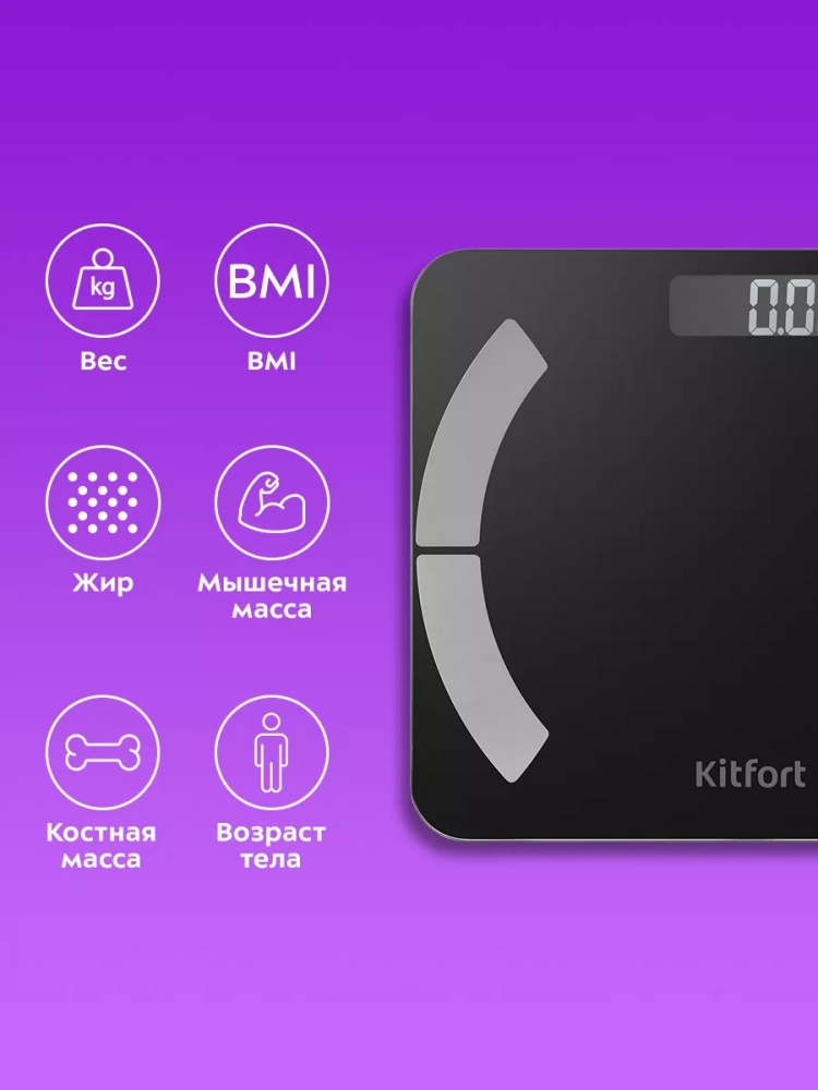 Электронные напольные весы обеспечивают высокую точность измерения и станут неизменным спутником для людей, следящих за своим весом. Весы Kitfort КТ-814 представляют современное поколение «умных» весов, поскольку их можно подключить к приложению Fitdays, включив передачу данных через Bluetooth.