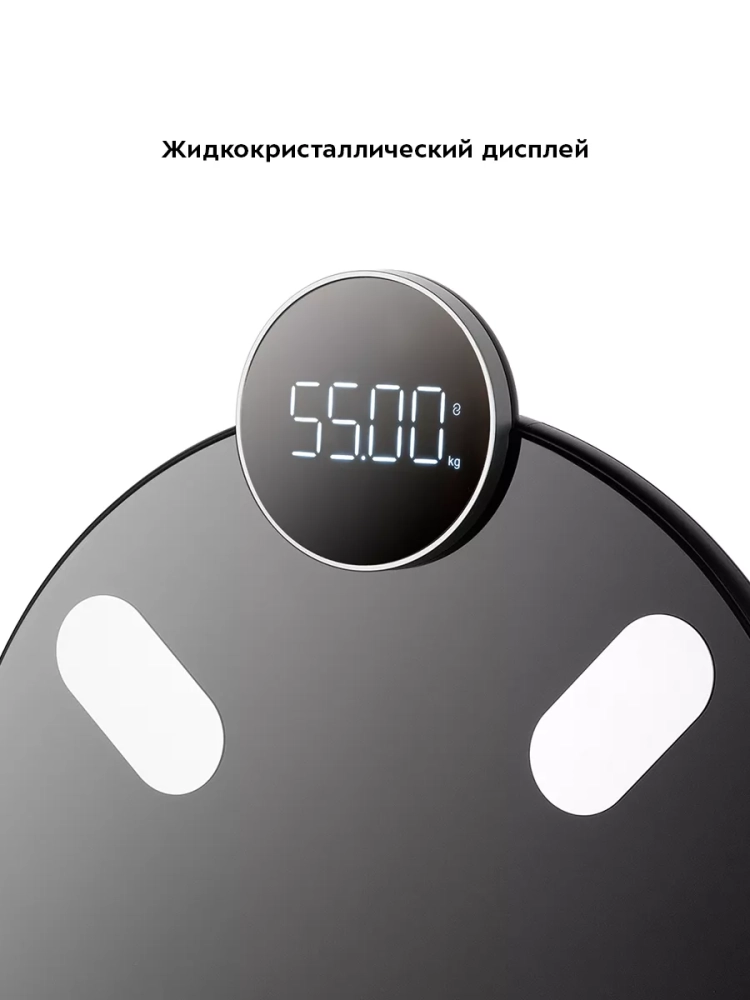 Весы оснащены жидкокристаллическим дисплеем с крупными цифрами, что делает их использование максимально удобным. Платформа выполнена из высокопрочного полированного стекла, а прорезиненные ножки обеспечивают дополнительную устойчивость весам и предотвращают их скольжение по полу, что гарантирует безопасность во время взвешивания. Токопроводящие электроды вмонтированы в платформу, они необходимы для проведения биоимпедансного анализа.