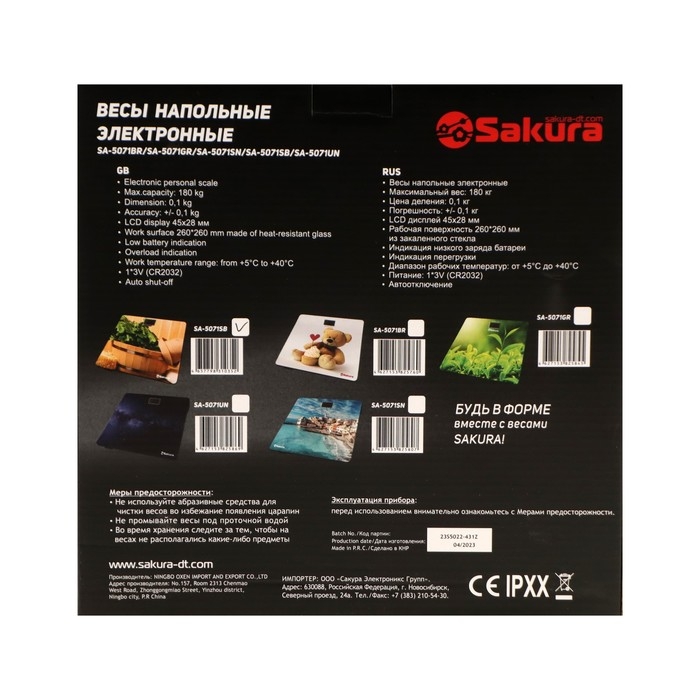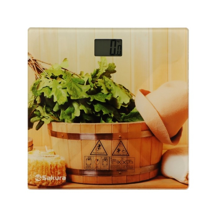 Весы напольные Sakura SA-5071SB, электронные, до 180 кг, рисунок "баня"