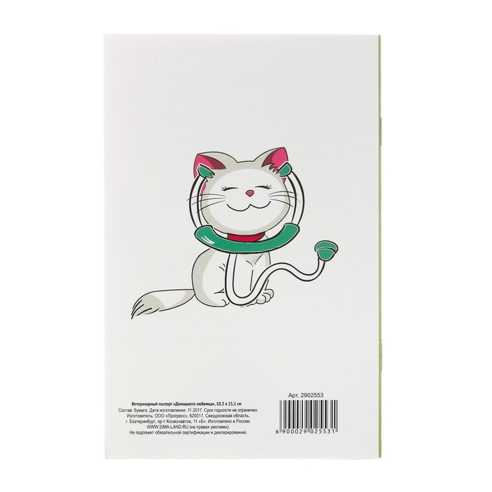 Ветеринарный паспорт "Домашнего любимца", 10,3 х 15,1 см