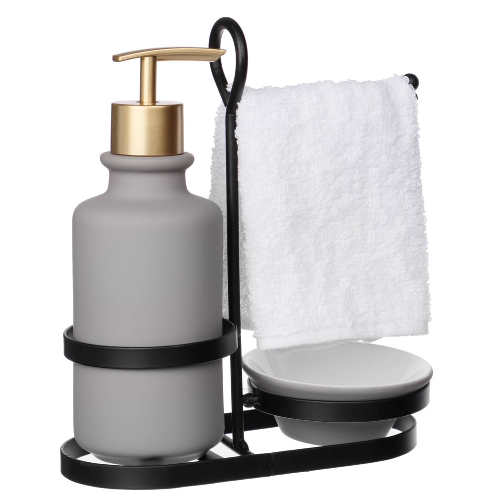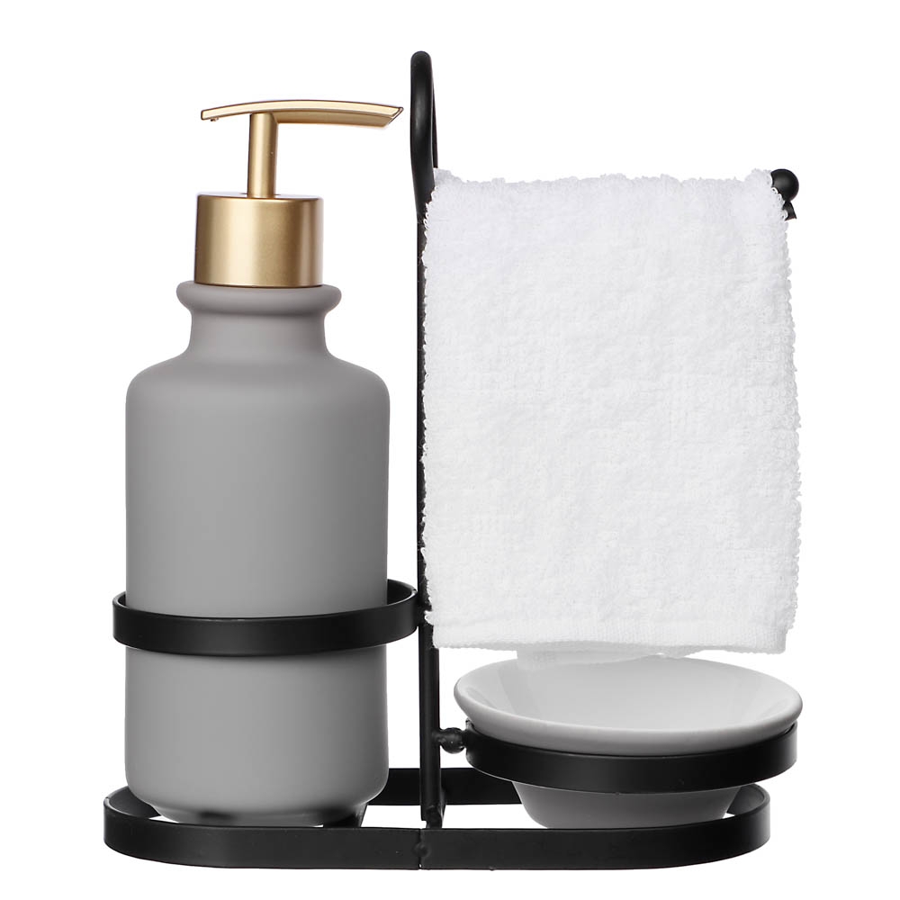 Диспенсер для моющего средства с салфеткой и металлической стойкой VETTA – это удобный набор для ванной комнаты, который имеет эстетичный дизайн, прекрасно дополняющий интерьер. Стойка не занимает много пространства, а также исключает случайное опрокидывание керамического диспенсера. Нажимной дозатор выдает оптимальное количество мыла, что значительно экономит расход моющего средства. Керамика обладает повышенной износостойкостью, легко моется и не теряет вид с течением времени. Товары представлены в ассортименте, выбор цветов или моделей не предоставляется. На фотографиях могут быть представлены не все варианты.