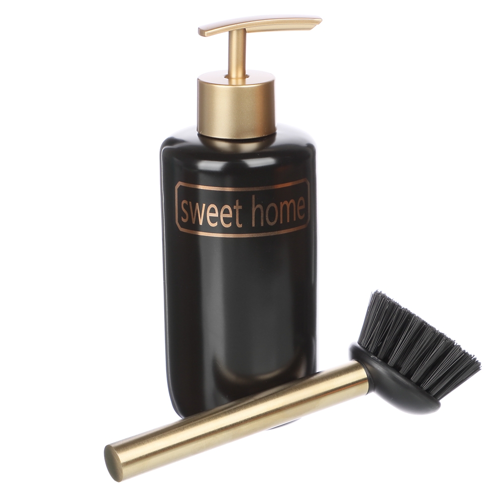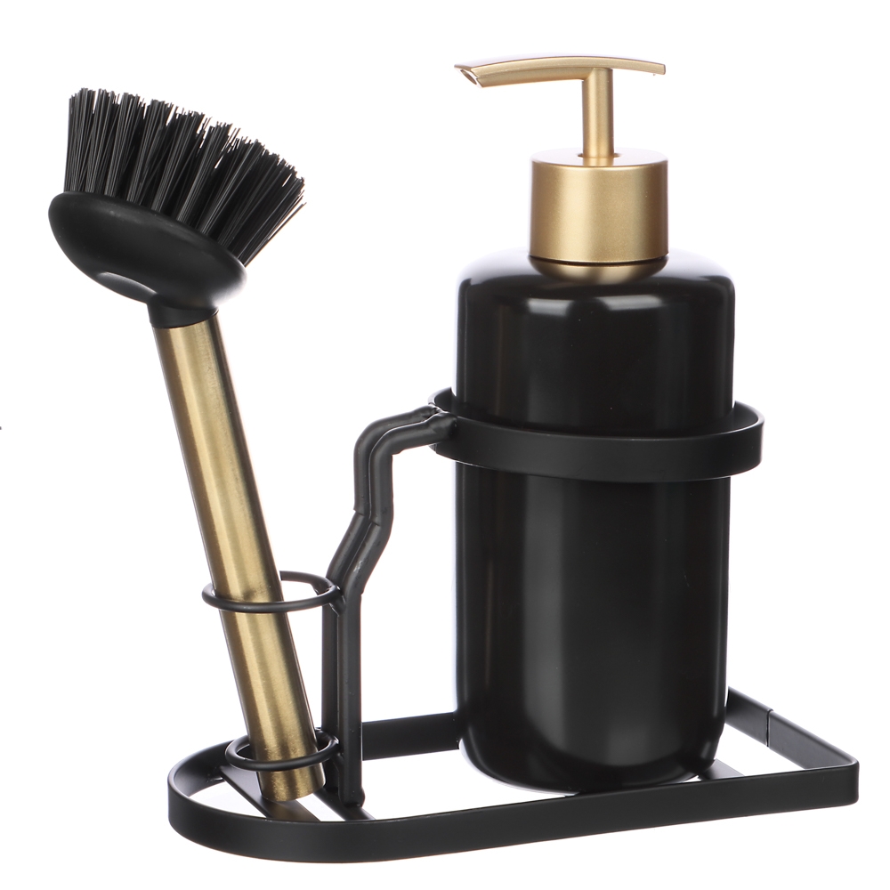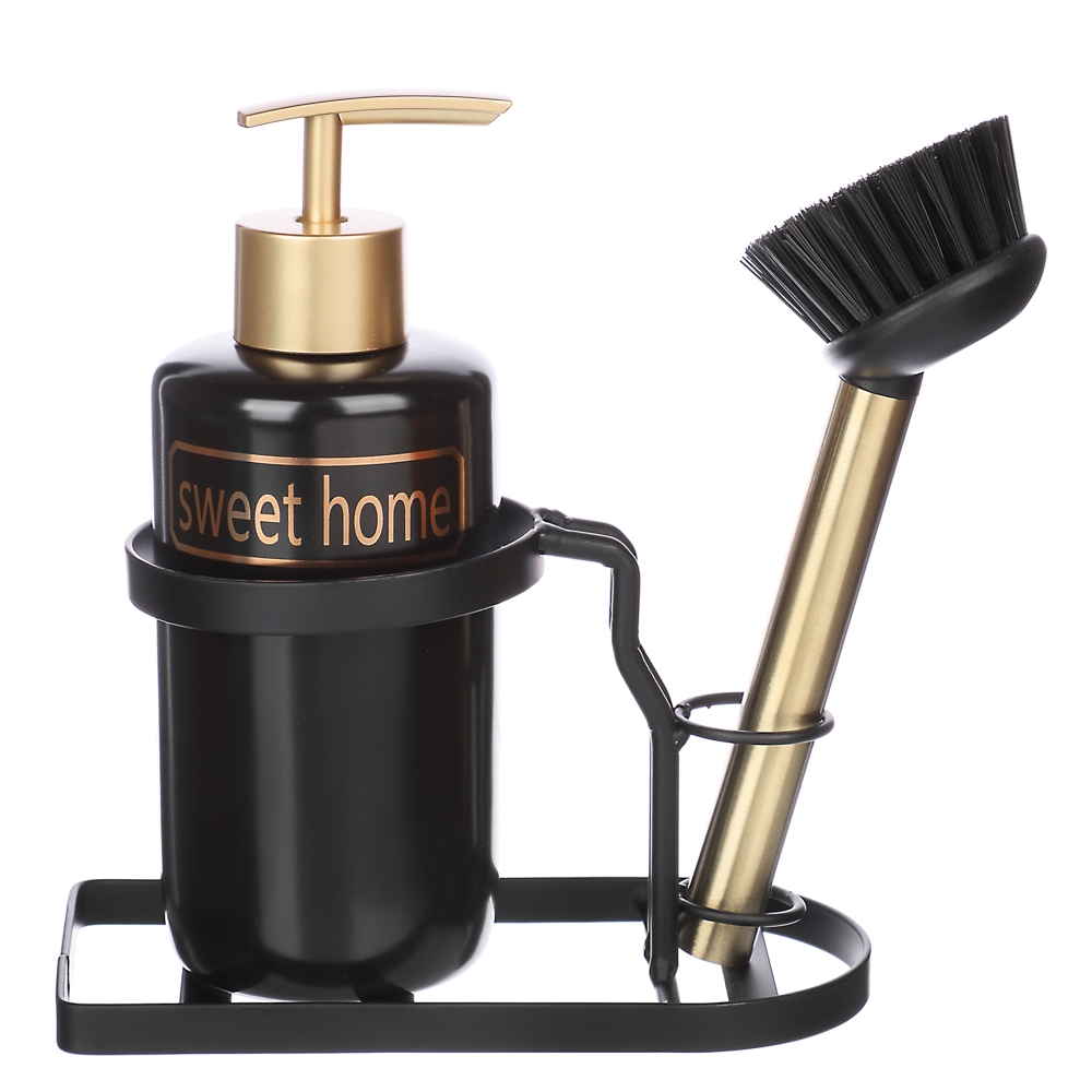 Диспенсер для моющего средства VETTA Sweet Home со щеткой и металлической стойкой станет незаменимым аксессуаром на вашей кухне. Черный с золотистыми элементами, он гармонично впишется в любой интерьер. Благодаря удобной металлической стойке, диспенсер можно разместить на любой поверхности, будь то столешница или раковина. А щетка из комплекта поможет быстро и эффективно очистить загрязненные поверхности. Объема диспенсера хватает на длительное время использования, а благодаря дозатору вы сможете контролировать расход моющего средства. Товары представлены в ассортименте, выбор цветов или моделей не предоставляется. На фотографиях могут быть представлены не все варианты.