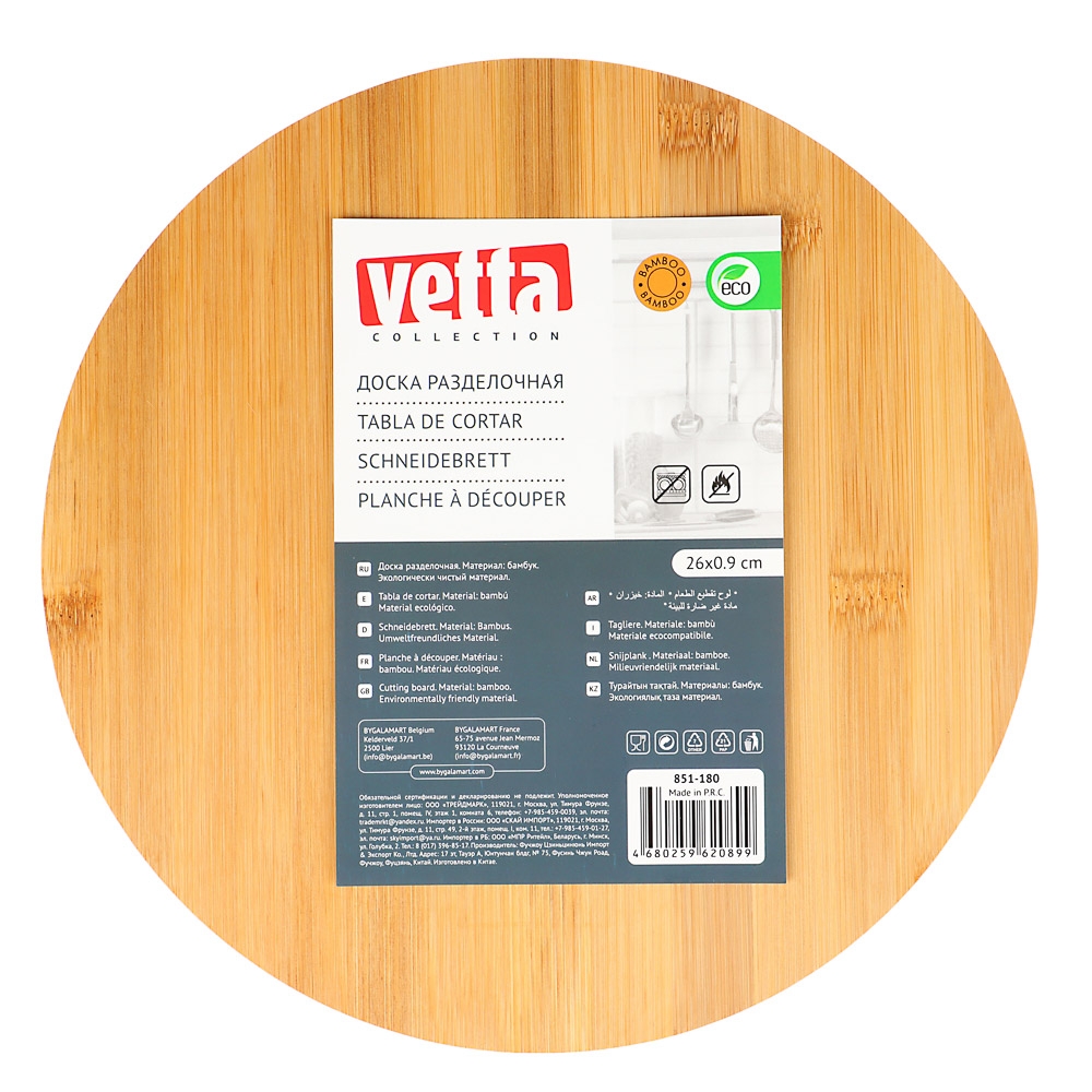 VETTA Гринвуд Доска разделочная бамбук, круглая, 26х0,9см