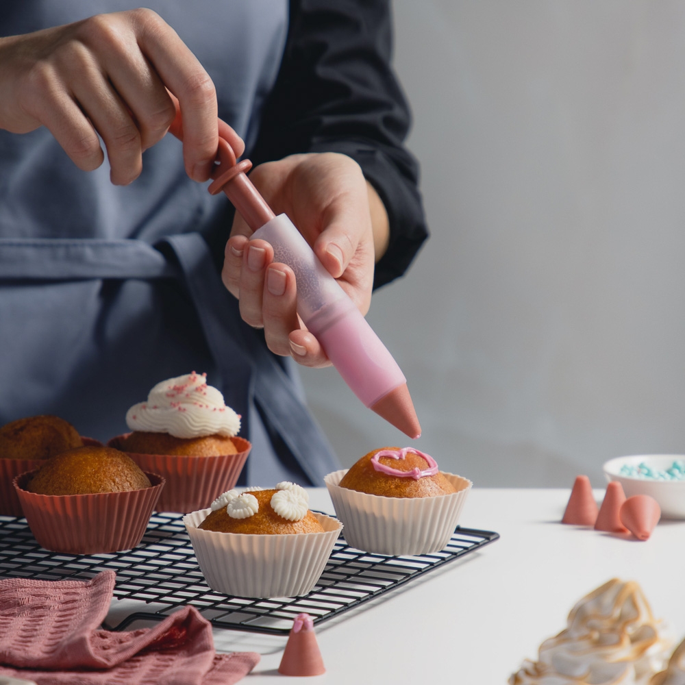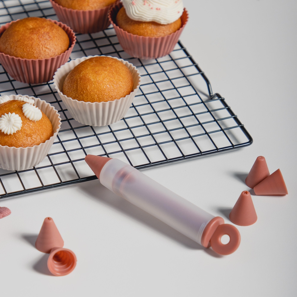 Шприц кондитерский Доляна «Фобос», 4 насадки, 15×2,5×2,5 см, цвет розовый