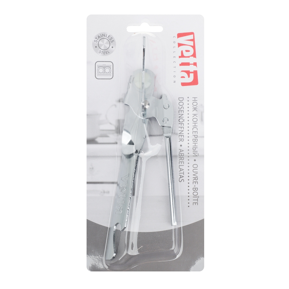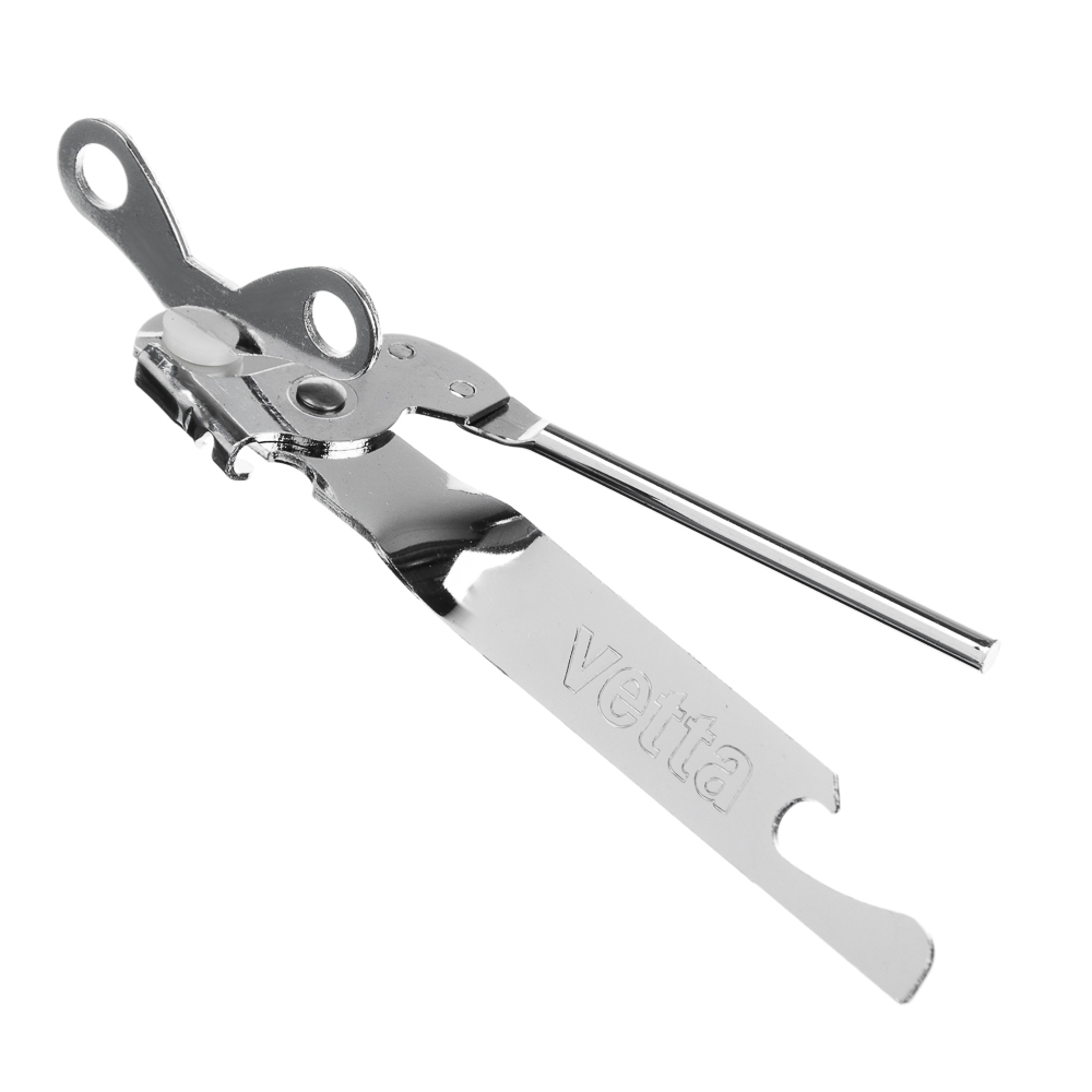Универсальная открывалка VETTA один из нужных приспособлений на кухне. С ее помощью можно открыть емкости разных типов: бутылки с металлическими крышками, консервы в жестяной упаковке, банки с заготовками.