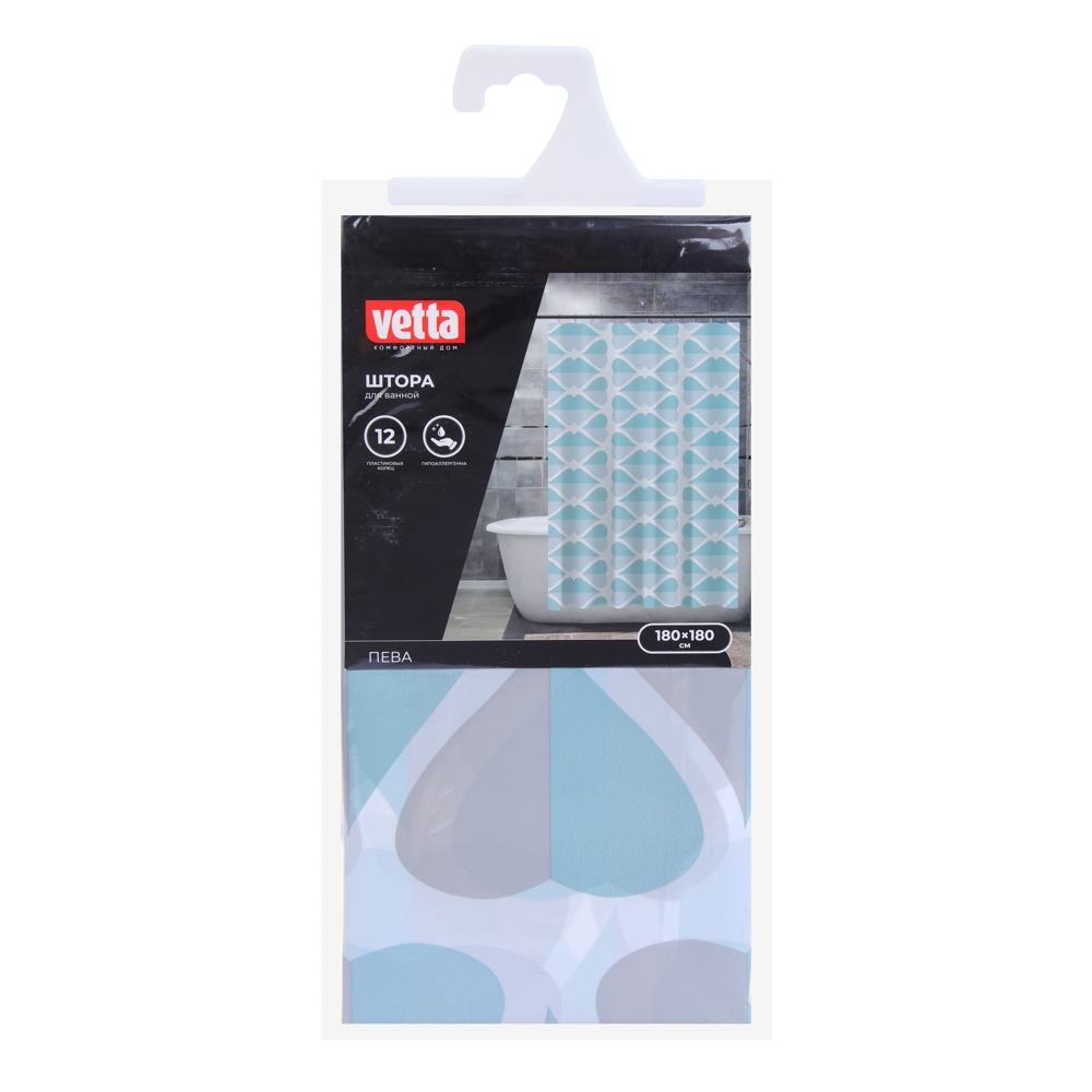 VETTA Шторка для ванной, ПЕВА, 30 г/м2, 180x180 см, Плитка