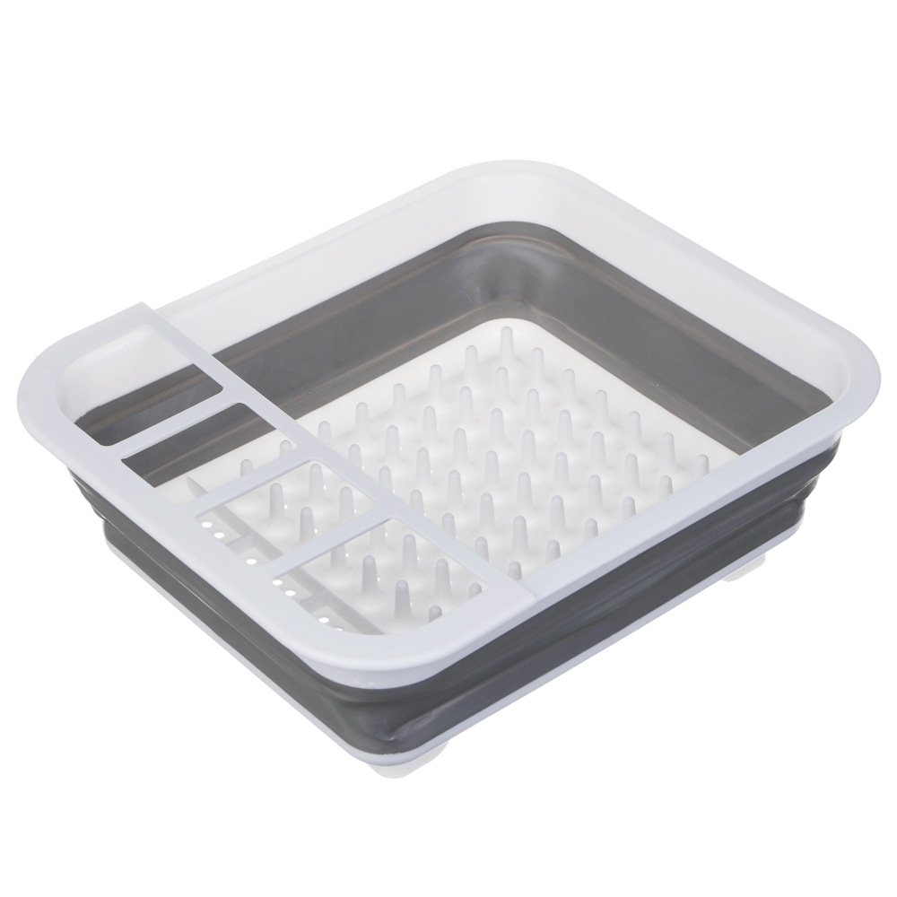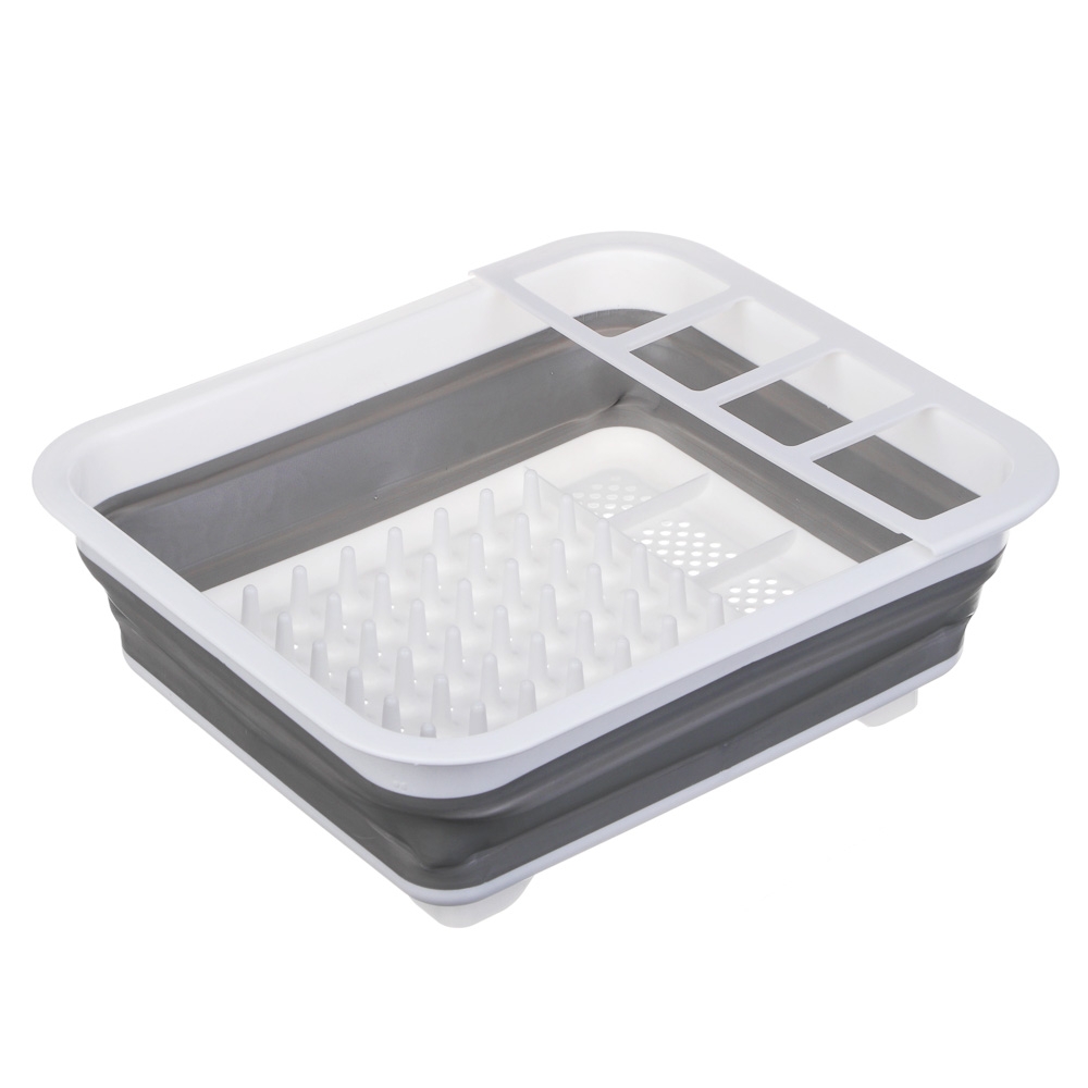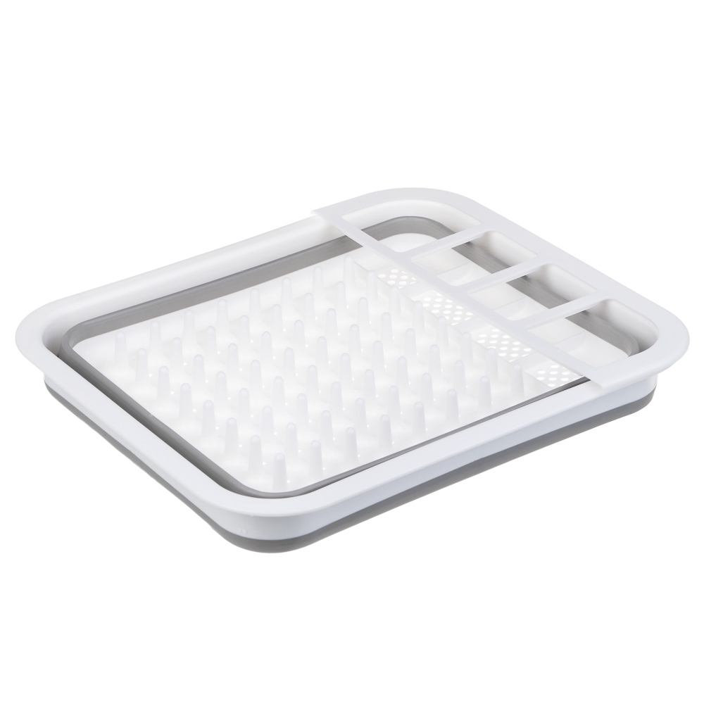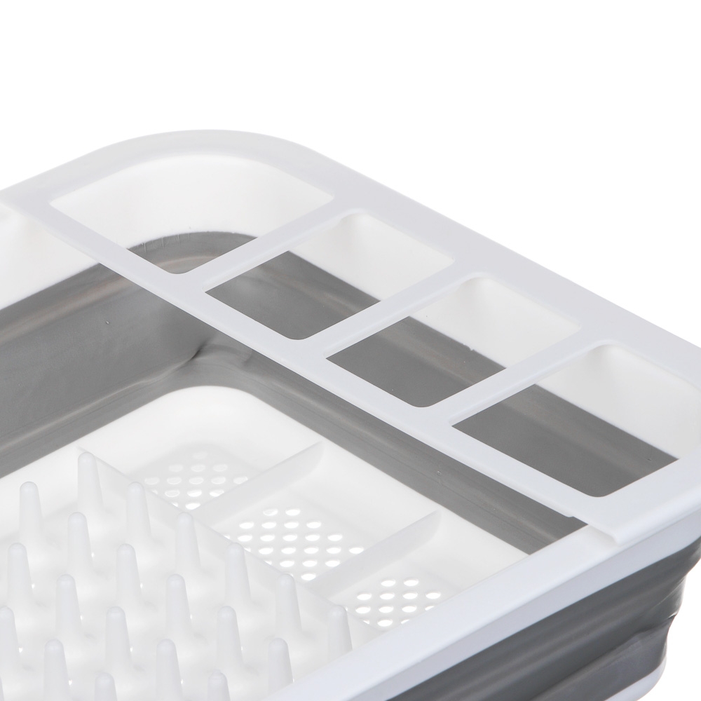 Не хватает отдельного пространства для сушки посуды? Складная сушилка для посуды VETTA позволит организовать место для сушки в любом месте на кухне – на рабочей поверхности, обеденном столе и даже на подоконнике. Изготовлена из пластика с силиконовой складной частью. Легко складывается и раскладывается, занимает минимум места и вмещает в себя достаточное количество посуды и столовых приборов. Посуда устойчиво помещается в контейнер, а вода стекает в ячейки в нижней части. После использования ее