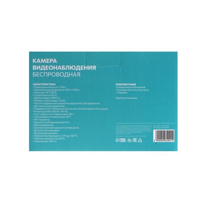 Видеокамера WiFi Luazon, CAM-06, управление со смартфона, 1.3Мп, поворот 355, microSD, белая
