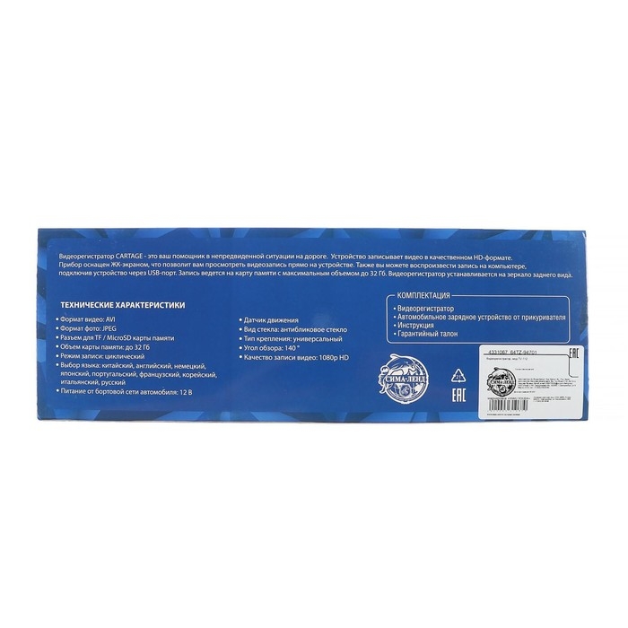 Видеорегистратор CARTAGE - это ваш помощник в непредвиденной ситуации на дороге. Устройство записывает видео в качественном HD формате. Прибор оснащен ЖК экраном, что позволяет вам просмотреть видеозапись прямо на устройстве. Также вы можете воспроизвести запись на ПК подключив устройство через USB порт. Запись ведется на карту памяти с максимальным объёмом до 32 Гб. Видеорегистратор устанавливается на зеркало заднего вида.