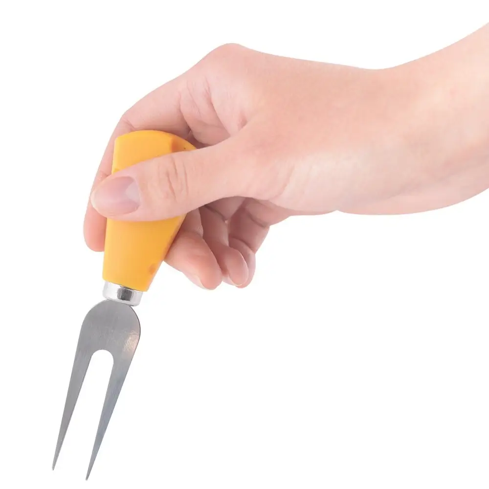 Вилка для сыра используется для того, чтобы подать сыр на стол цельным куском. Такой сыр нарезается сразу перед употреблением. Вилка также может использоваться для перекладывания с разделочной доски на тарелку. С этой вилкой ваш фуршет будет соответствовать всем правилам этикета, а гости останутся довольными правильно организованной подачей. Креативный столовый прибор станет отличным дополнением к сервировке и отличным подарком любителям сыров! Размер 12,5х3,5см. Изготовлено: лезвие из коррозионностойкой (нержавеющей) стали, ручка из пластмассы (полипропилен).