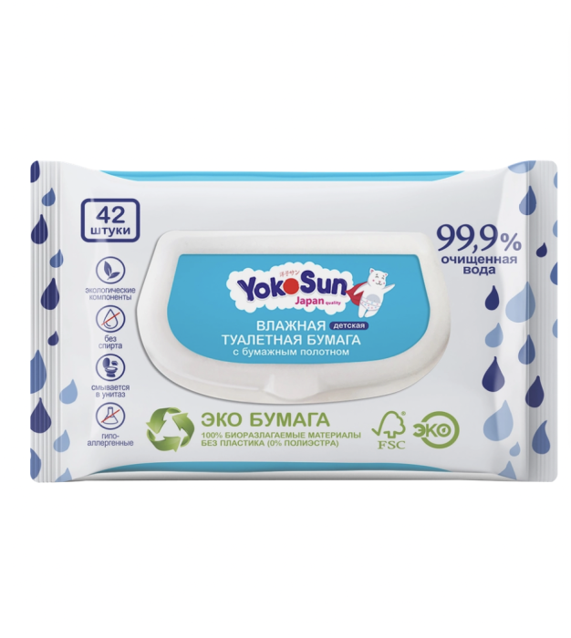 Влажная туалетная бумага "YOKO SUN" 42 штуки