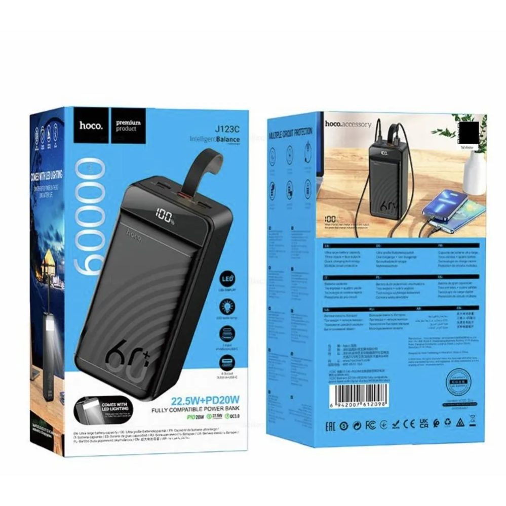Походный повербанк hoco J123C — ваш надежный помощник, который обеспечит вас энергией в любом путешествии или повседневной жизни.