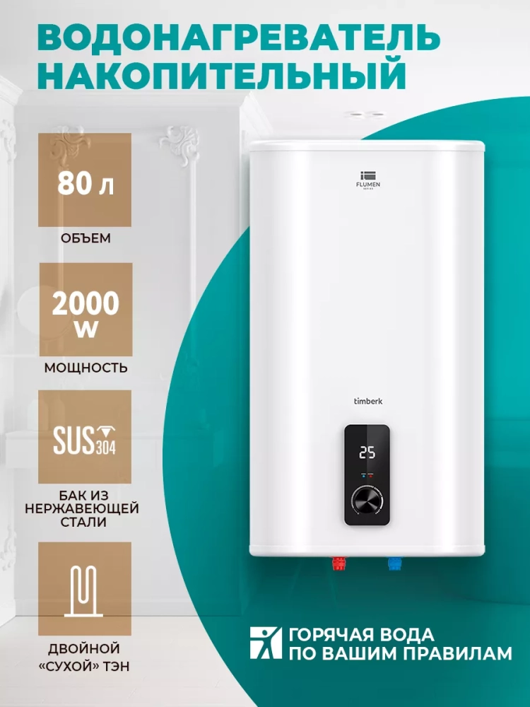 Двойной «сухой» нагревательный элемент, обеспечивающий наибольшую эффективность нагрева воды на протяжении всего срока эксплуатации.