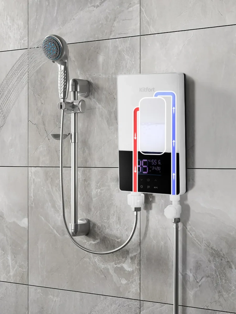 Проточный водонагреватель Kitfort КТ-6034 предназначен для нагрева холодной проточной воды.